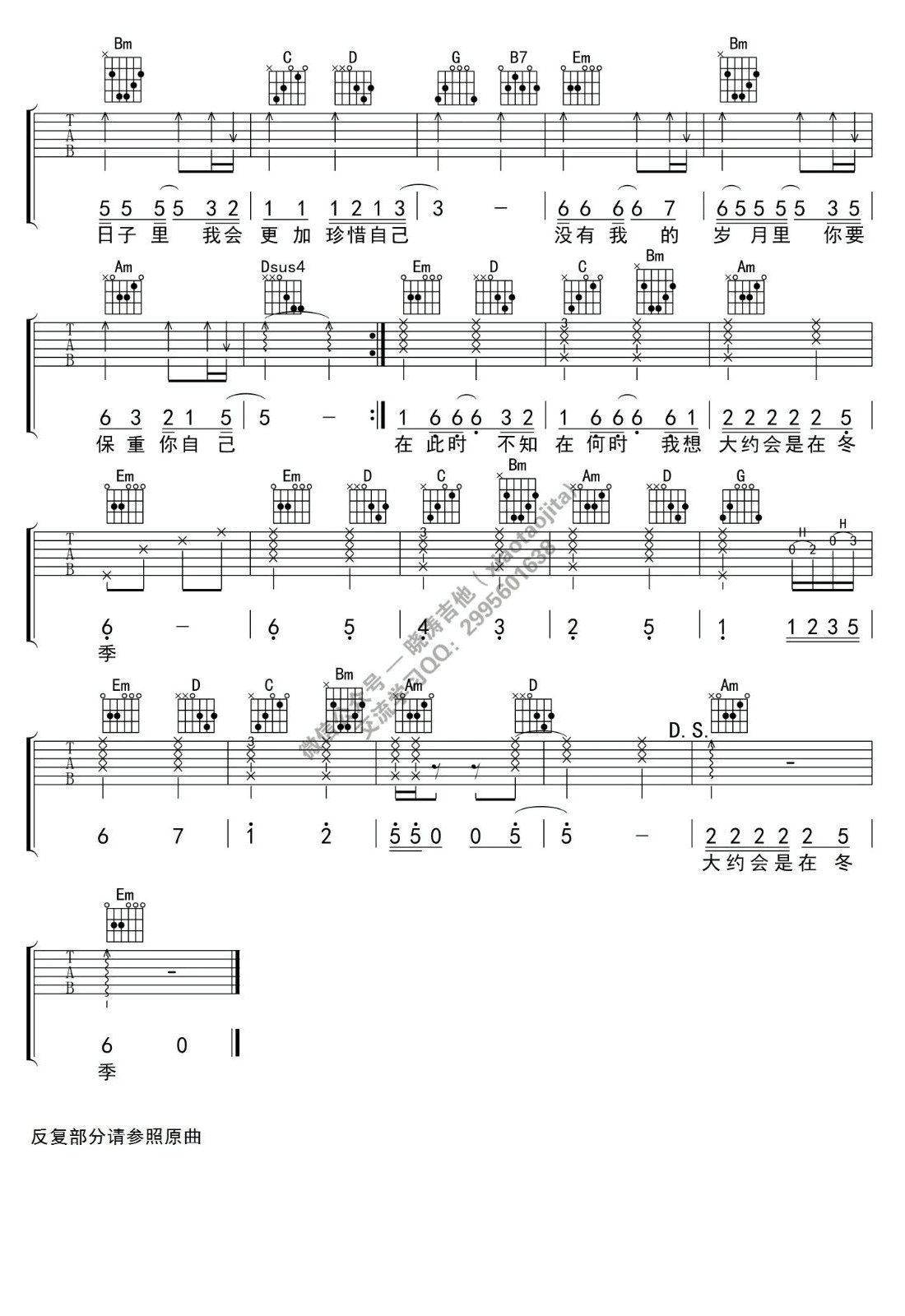 - 大约在冬季尤克里里谱 齐秦 ukulele谱 乌克丽丽四线谱