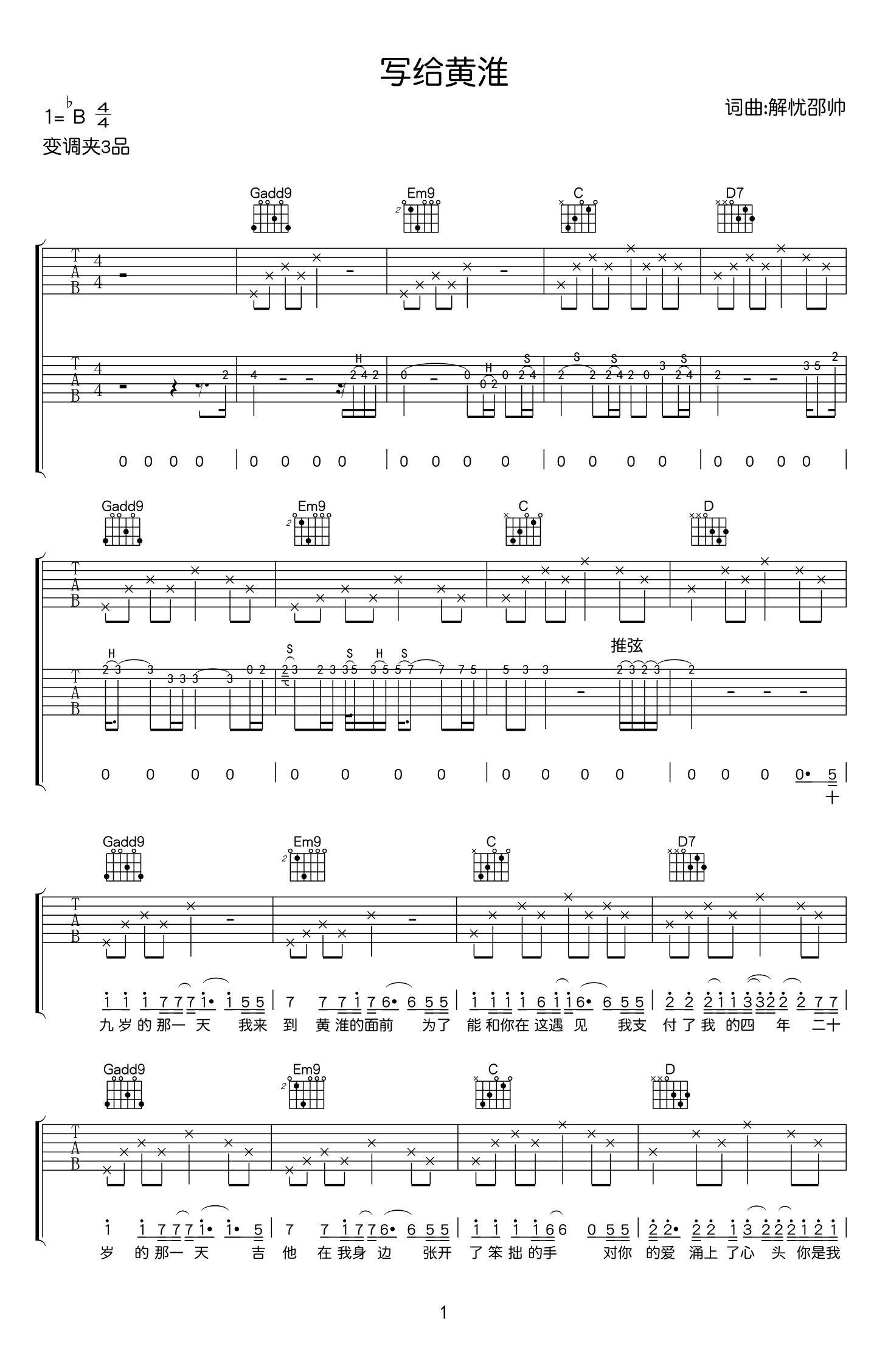 - 写给黄淮吉他谱 解忧邵帅 G调六线谱