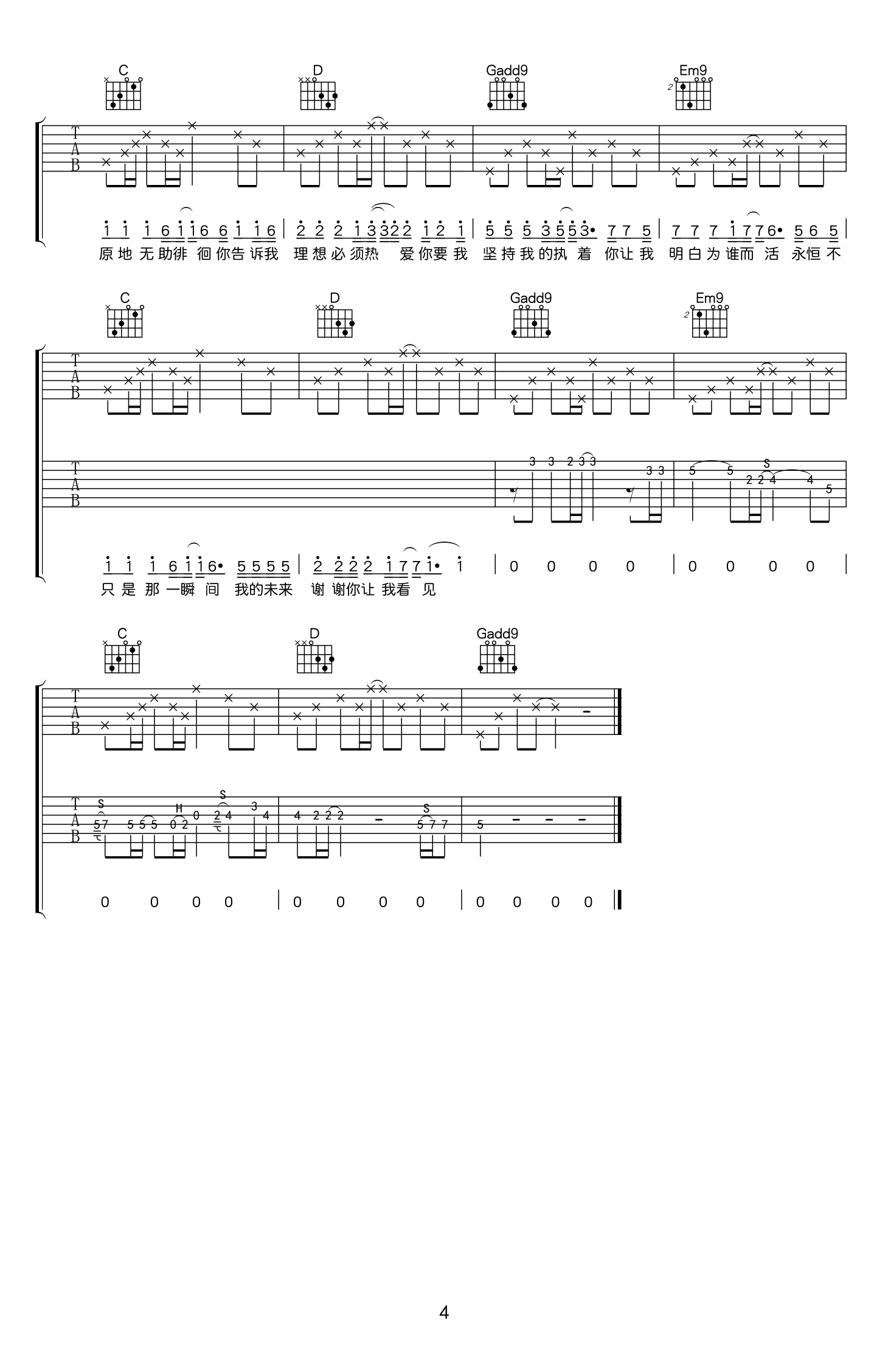 - 追光者吉他谱 C调弹唱谱 岑宁儿《追光者》六线谱