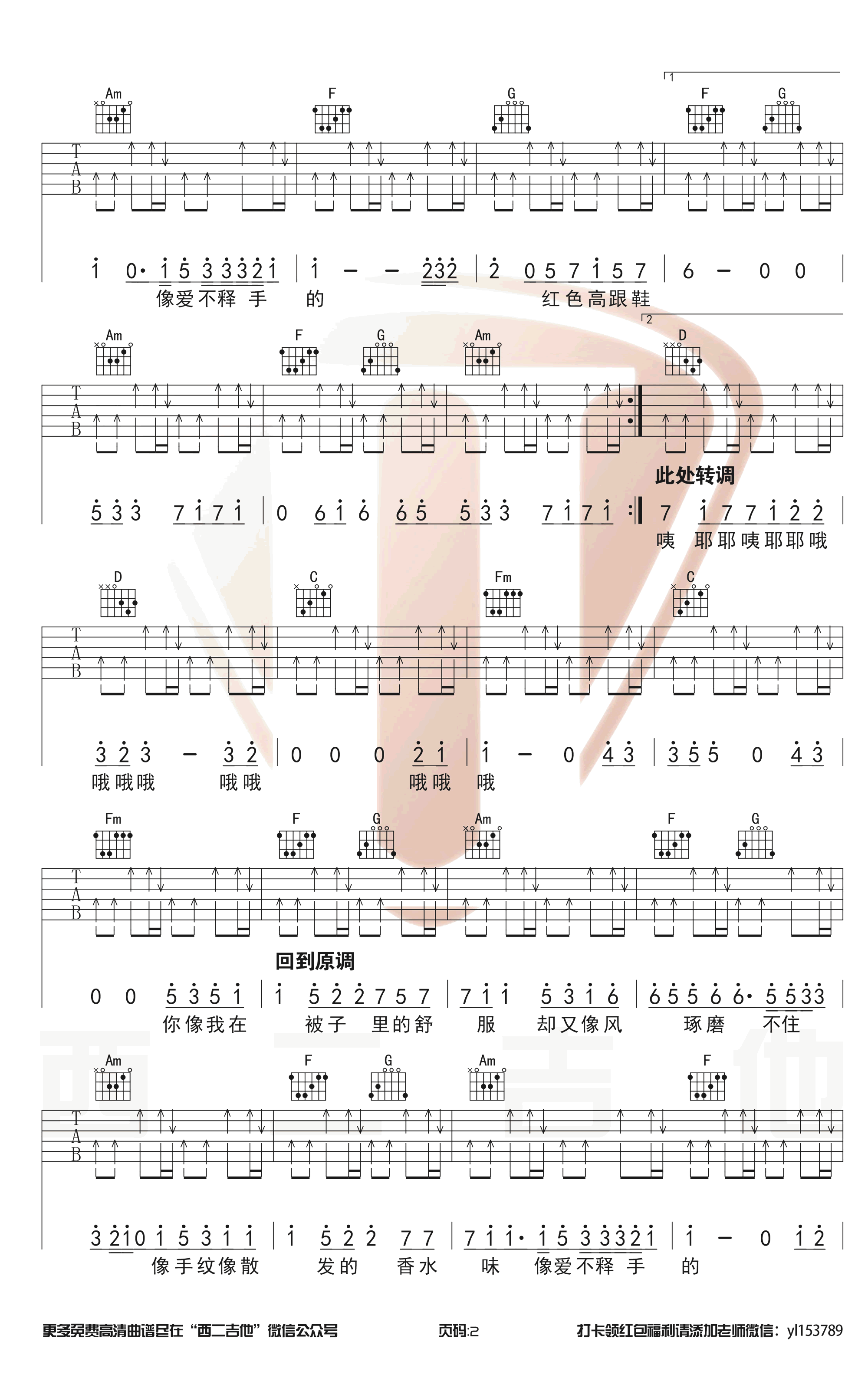 - 红色高跟鞋吉他谱 蔡健雅 吉他弹唱教学 六线谱