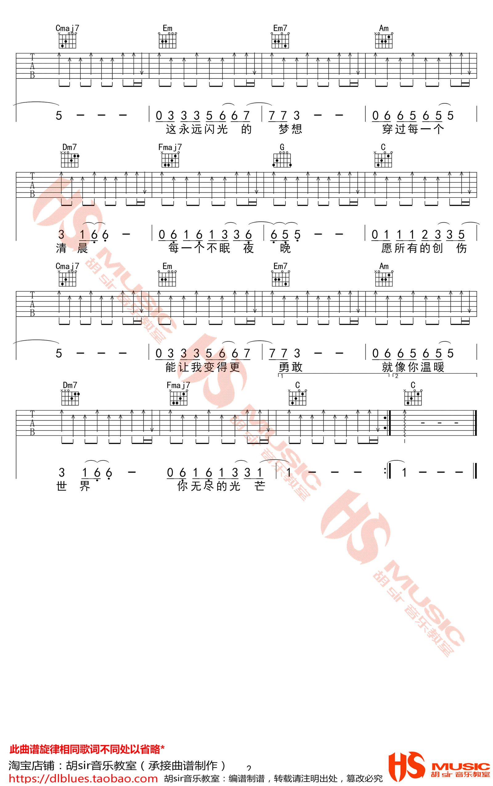 - 追光者吉他谱 C调弹唱谱 岑宁儿《追光者》六线谱