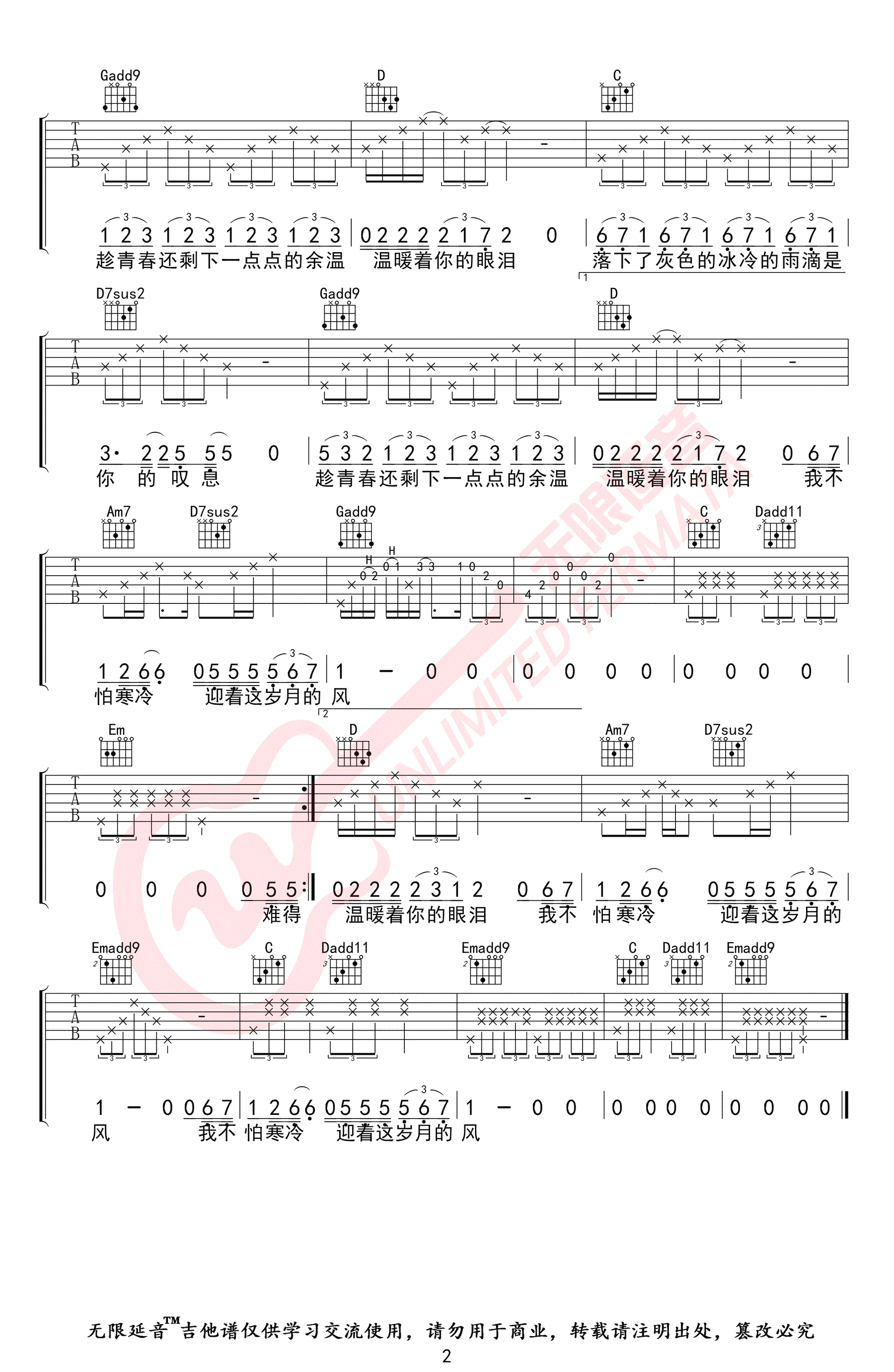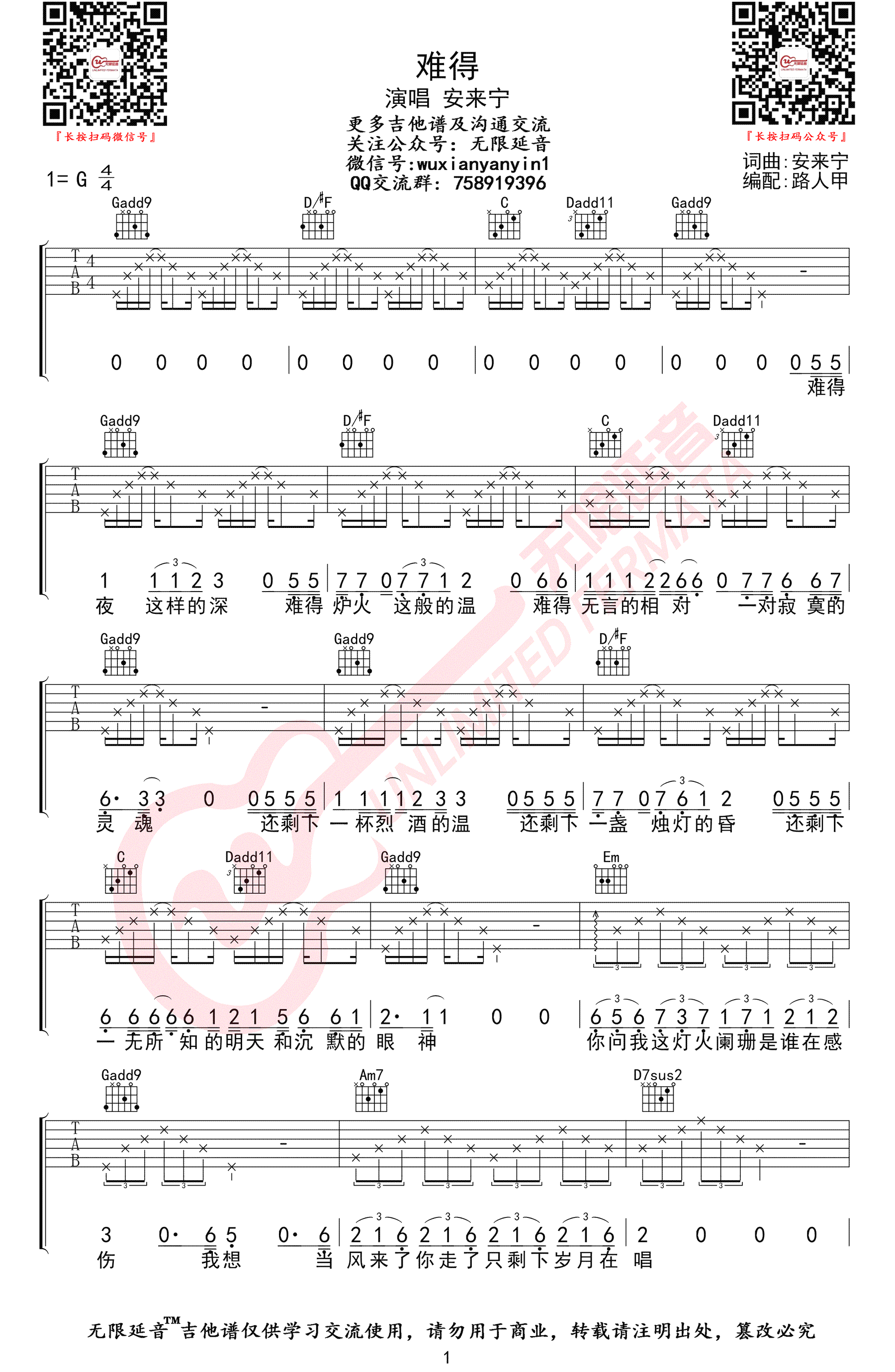 - 安来宁《难得》吉他谱_G调_弹唱六线谱_高清版