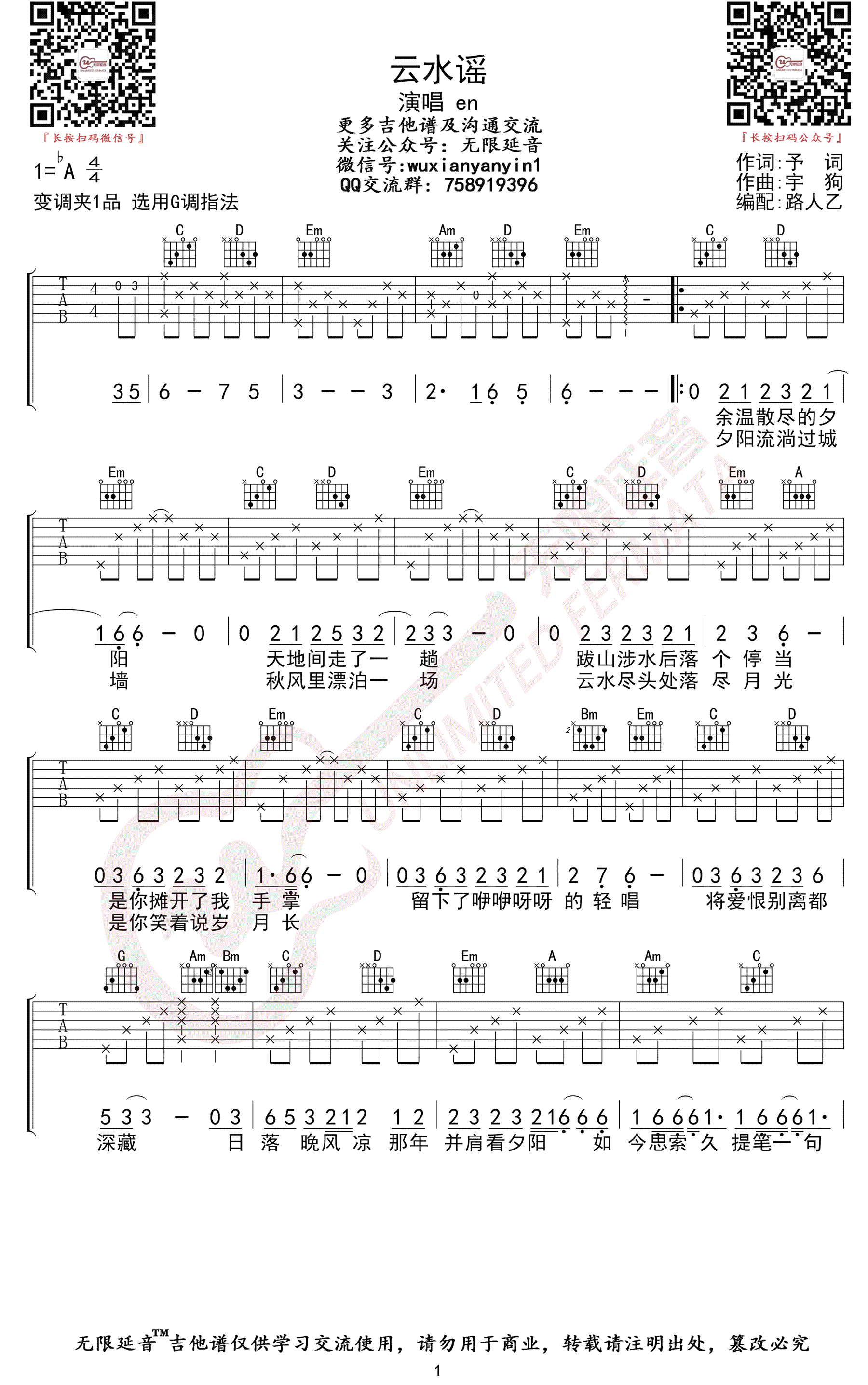 - 云水谣吉他谱_EN_G调_弹唱六线谱_古风歌曲