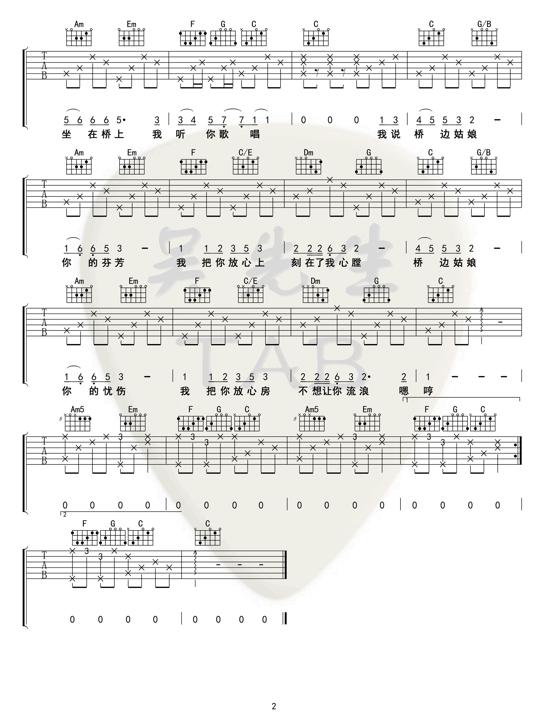 - 桥边姑娘吉他谱_海伦_C调弹唱谱_图片谱