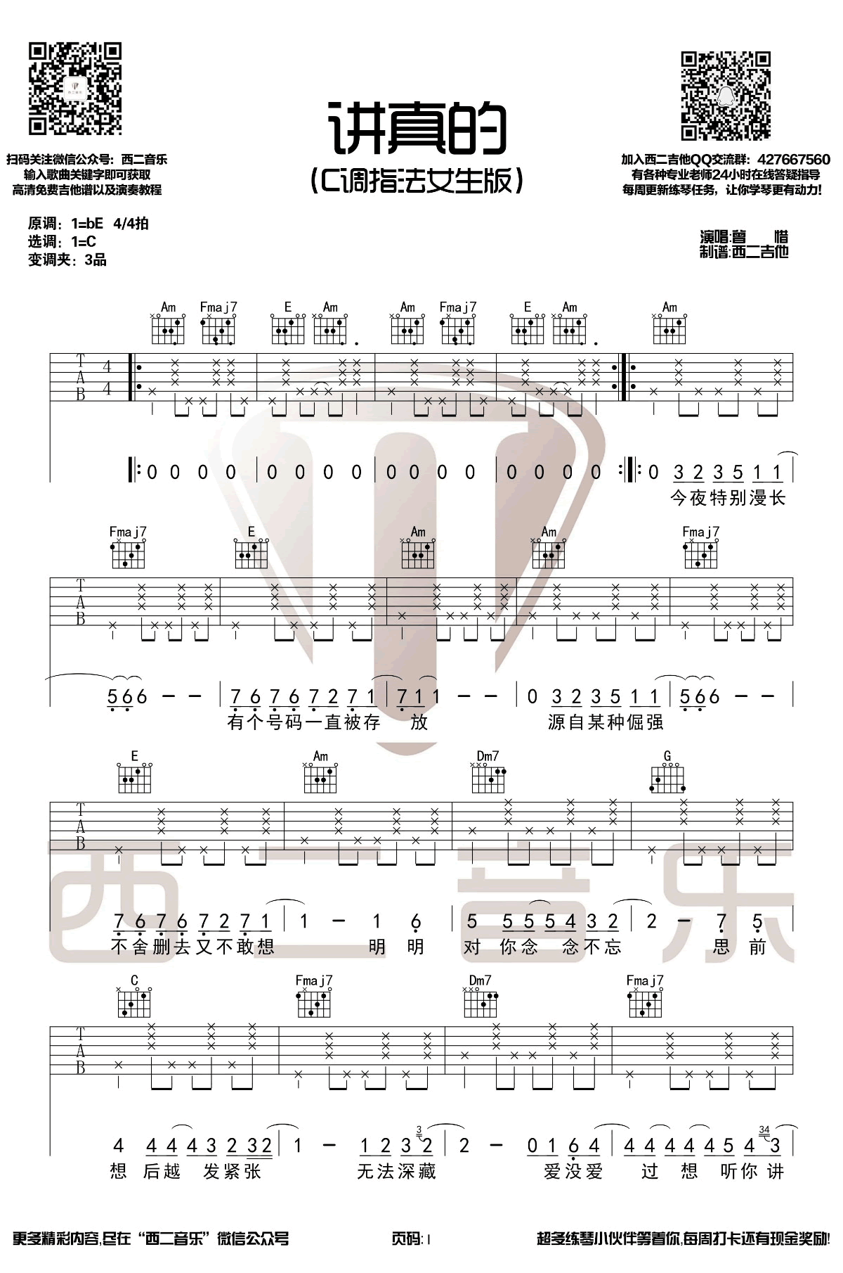 - 讲真的吉他谱_C调指法女生版_曾惜_吉他教学视频
