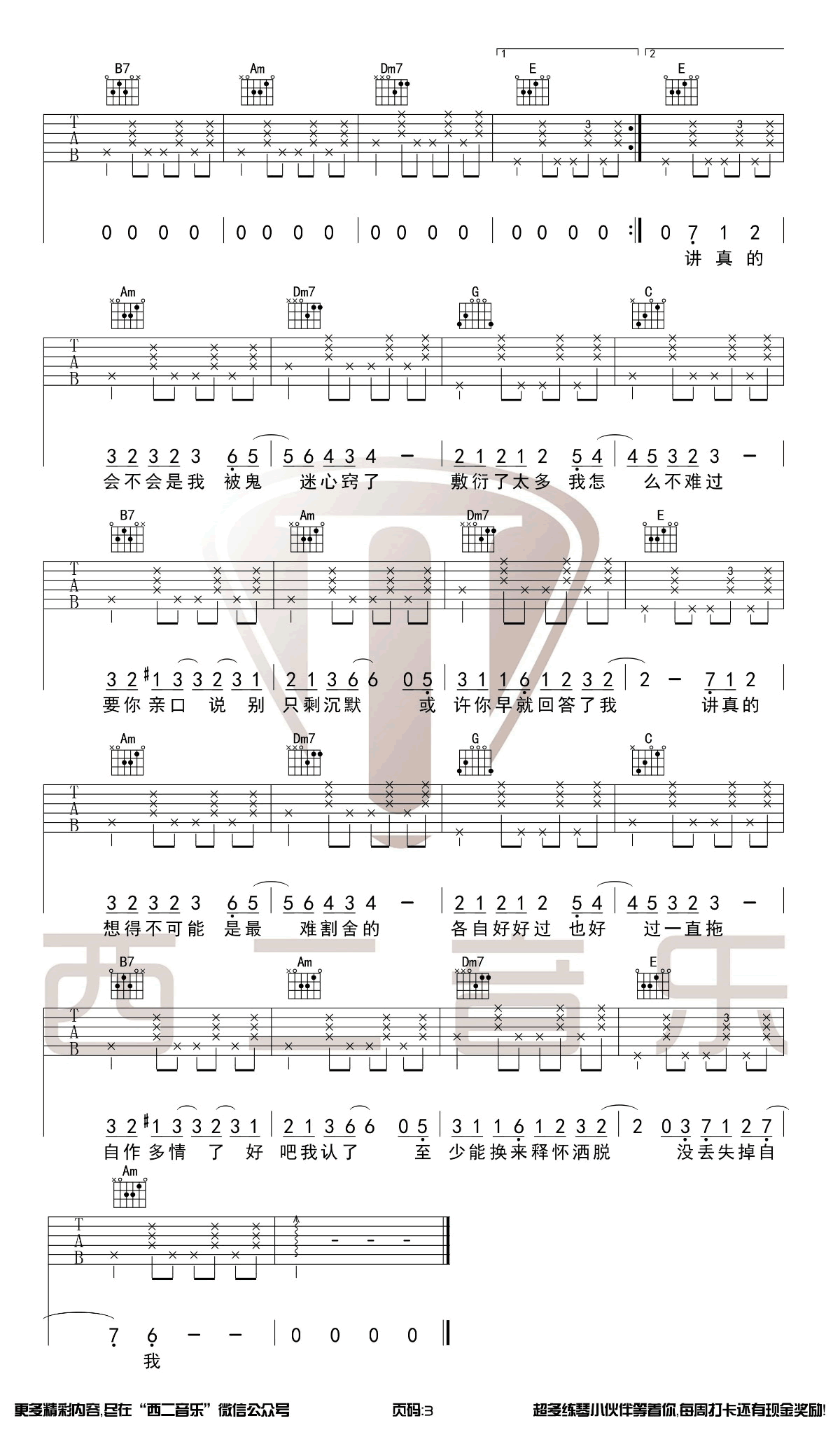 - 不是因为寂寞才想你吉他谱_TRY/王小帅_弹唱六线谱