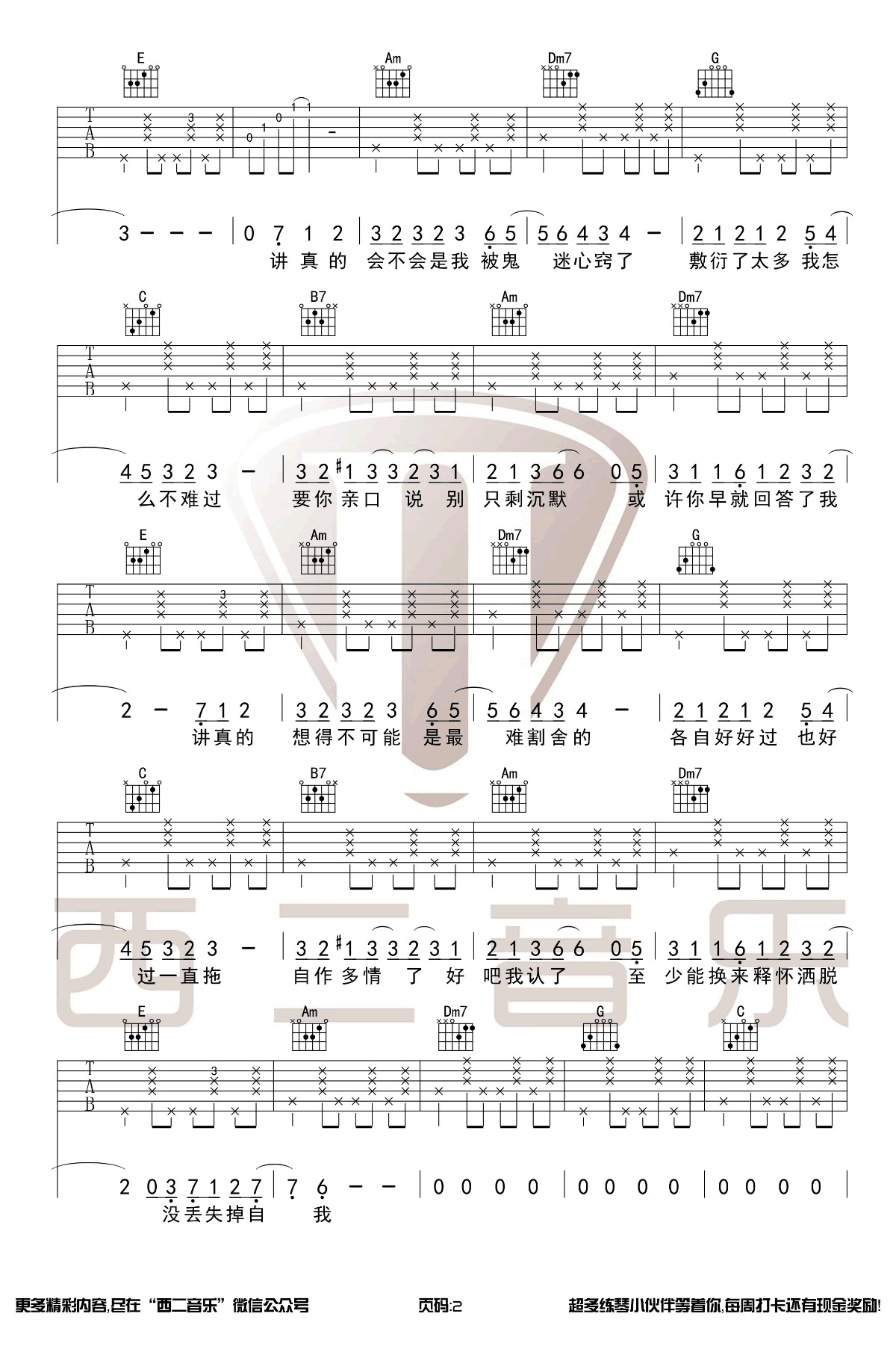 - 安和桥间奏指弹谱_高度还原版_安河桥吉他独奏谱