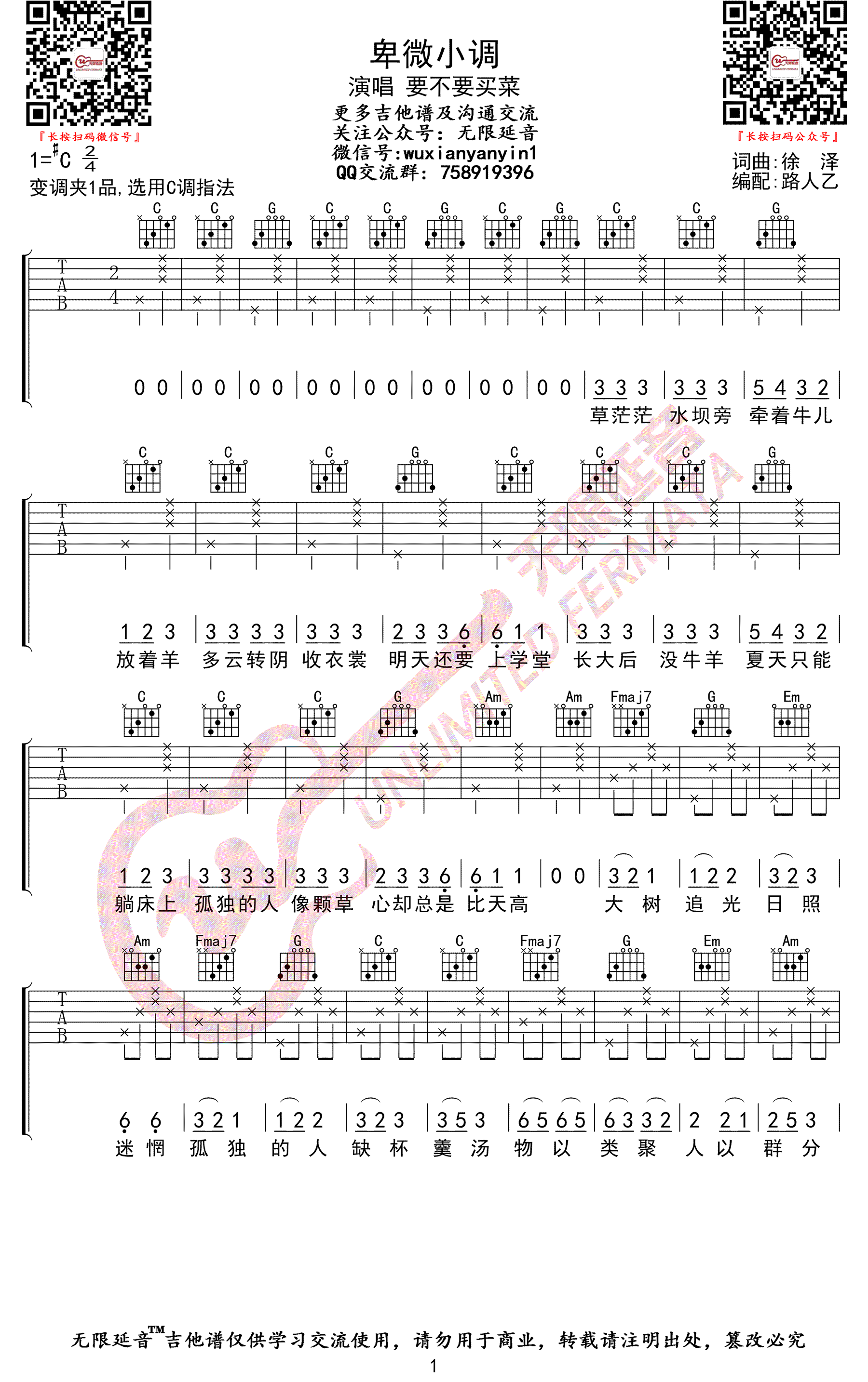 - 卑微小调吉他谱_要不要买菜_C调_弹唱图片谱