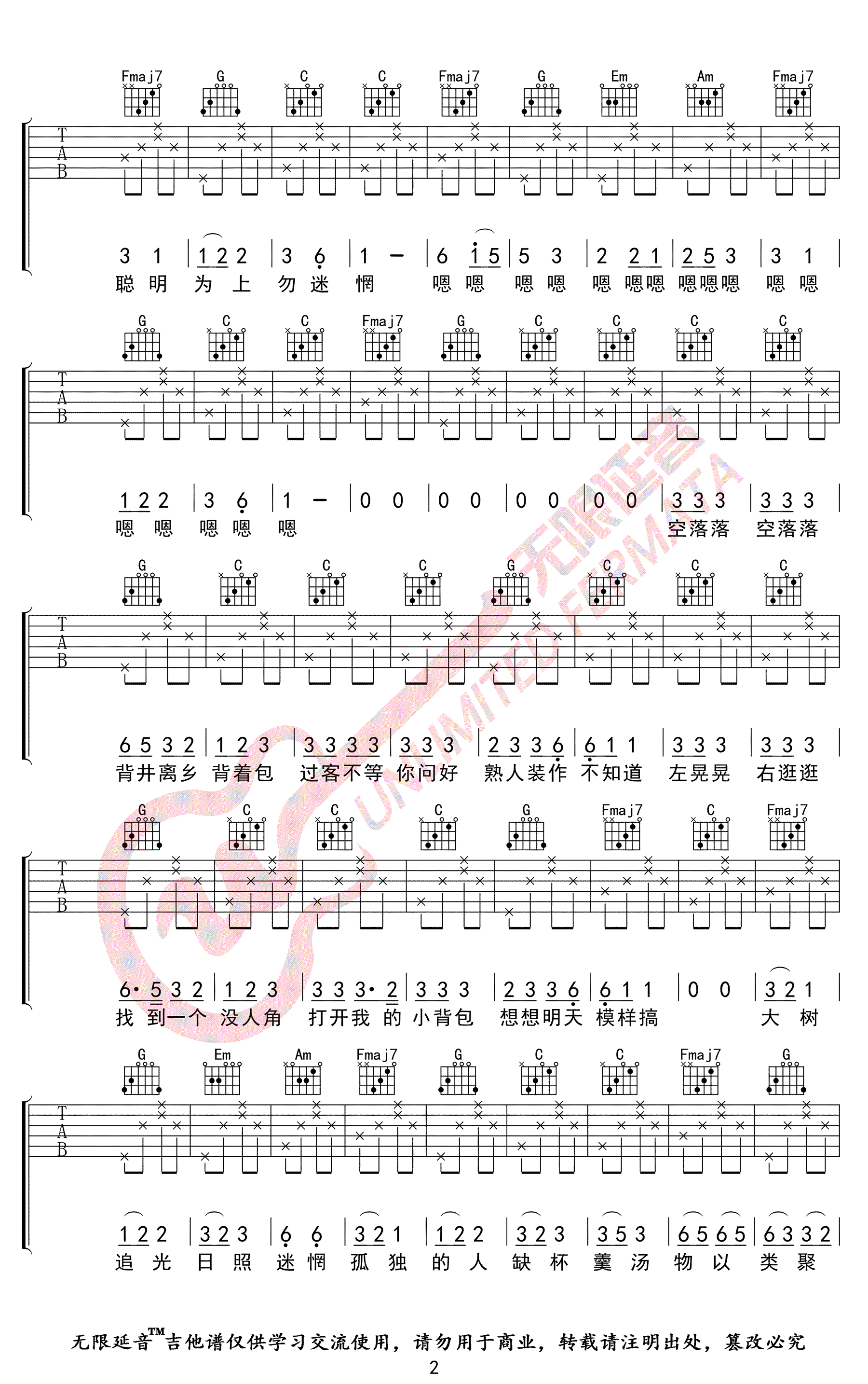 - 我的姑娘她在远方吉他谱_隔壁老樊_G调_高清图片谱