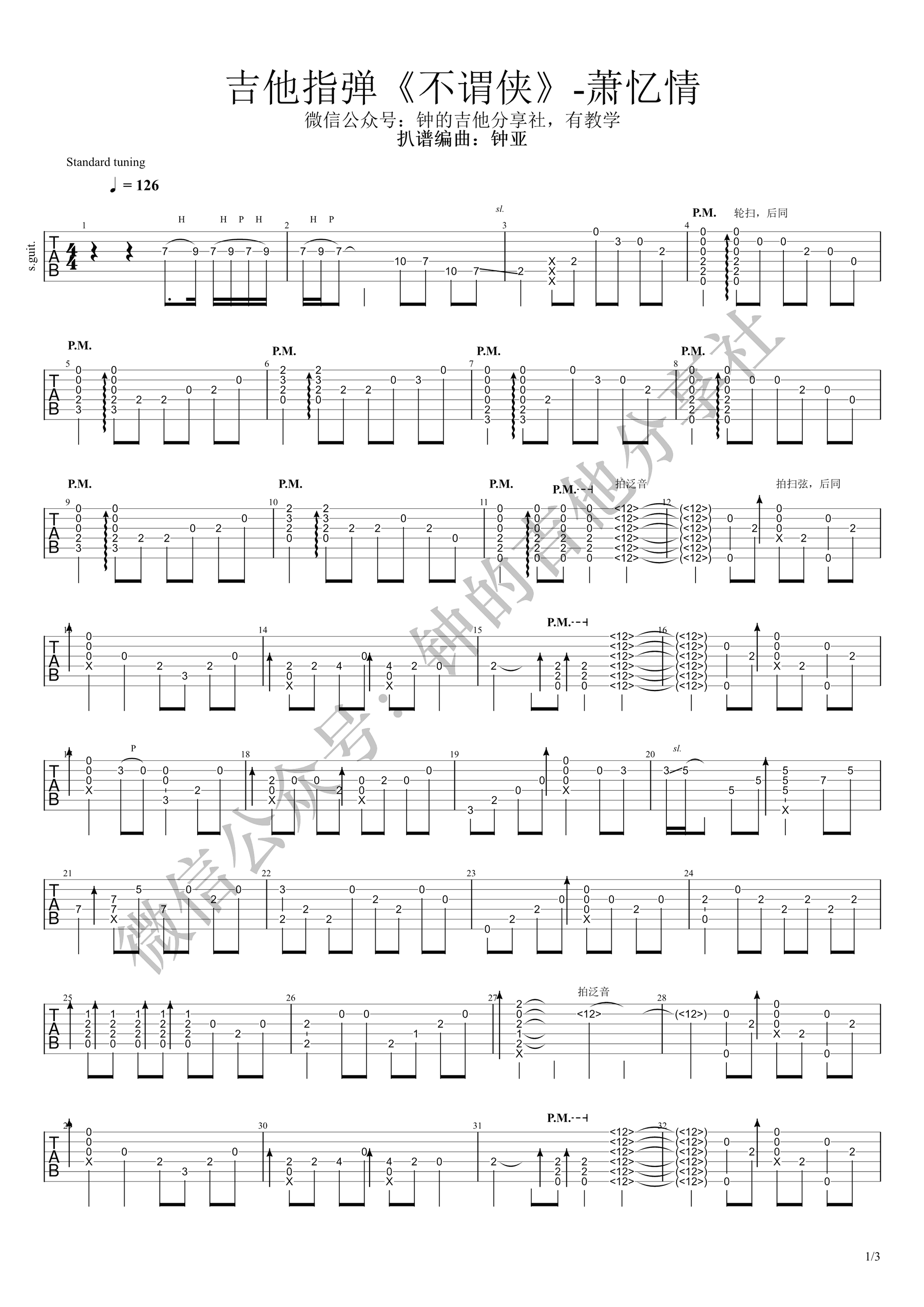 - 不谓侠指弹谱_萧忆情_吉他独奏谱_指弹吉他演示视频