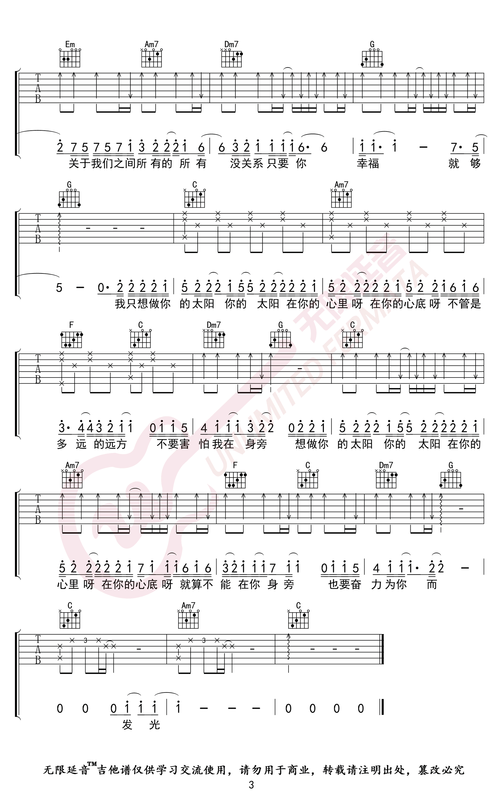 - 邱振哲 太阳吉他谱_C调指法_弹唱六线谱