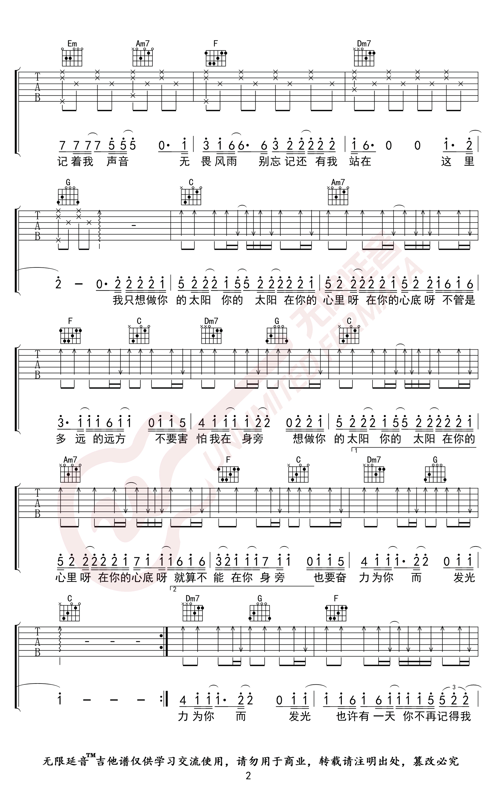 - 太阳吉他谱_邱振哲马杰雪_中国好声音_C调弹唱谱