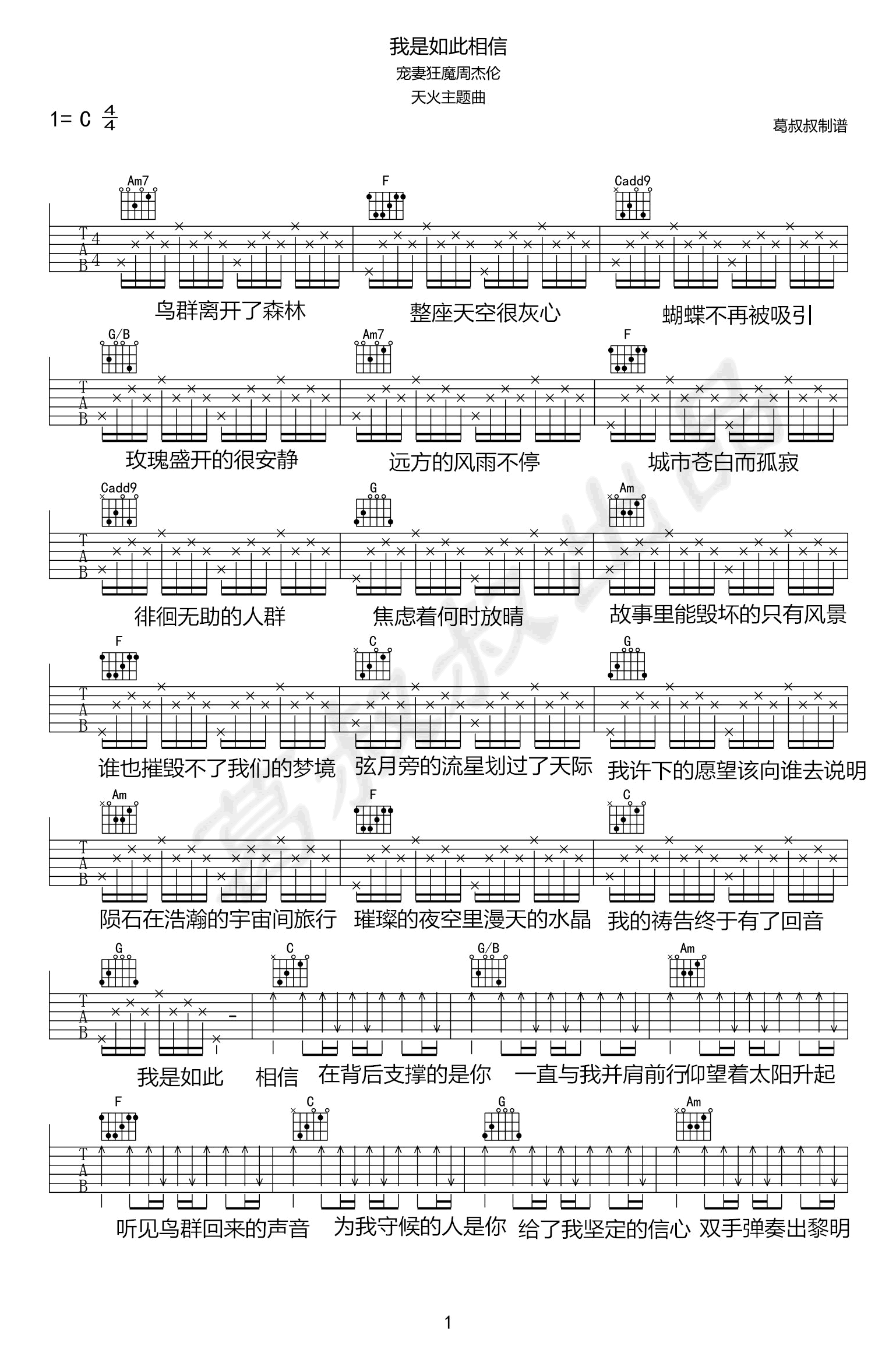 - 我是如此相信吉他谱_周杰伦《天火》主题曲_弹唱六线谱