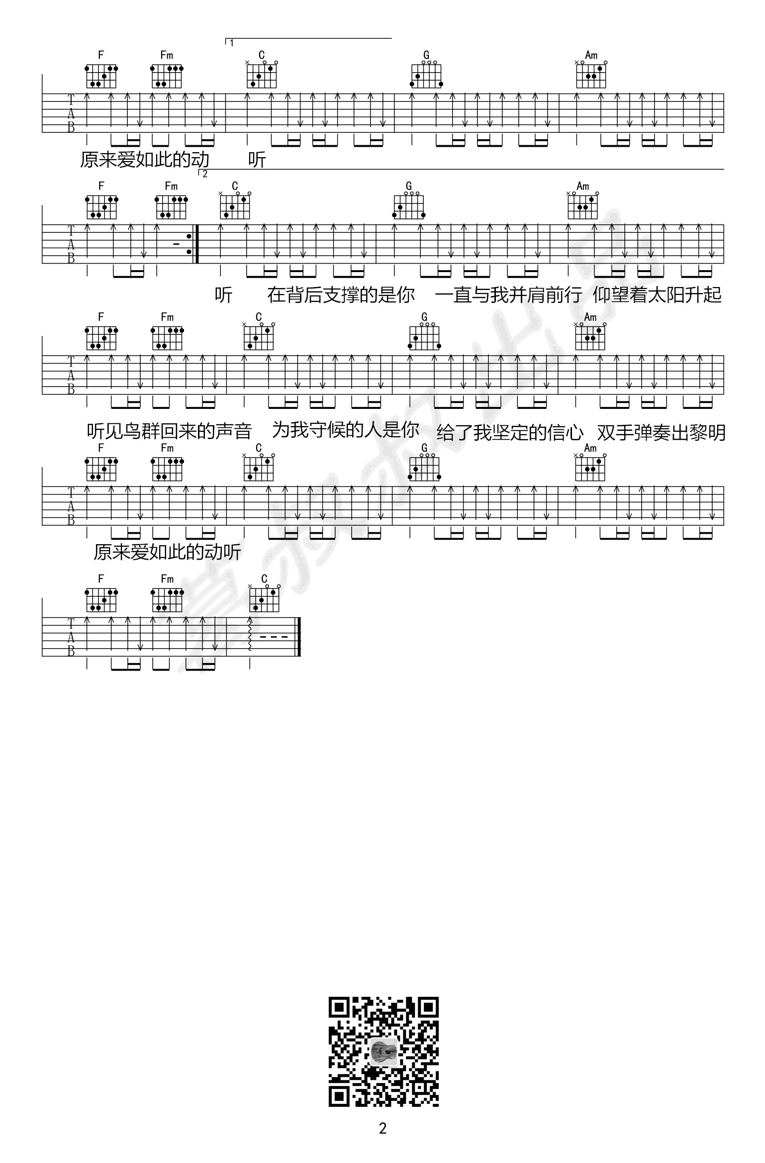 - 世间美好与你环环相扣吉他谱_柏松_C调_弹唱六线谱