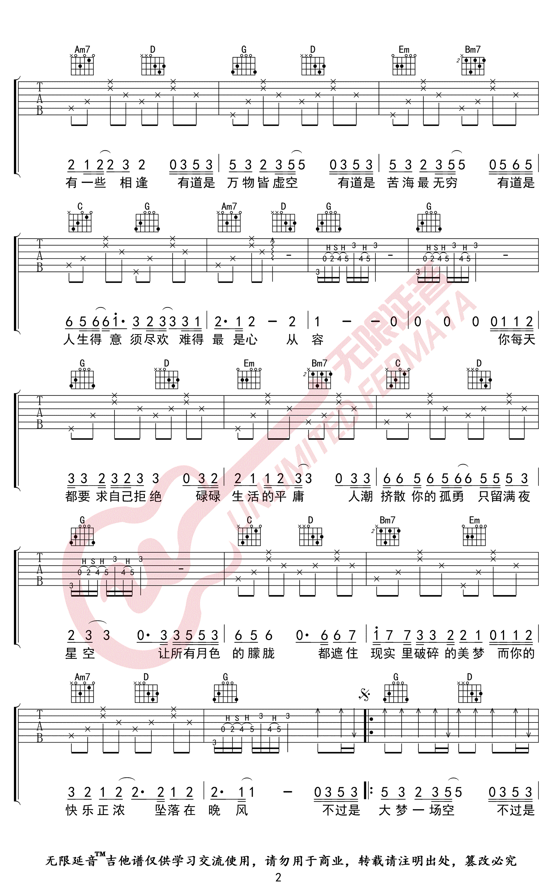 - 下山吉他谱_要不要买菜_G调六线谱_高清版