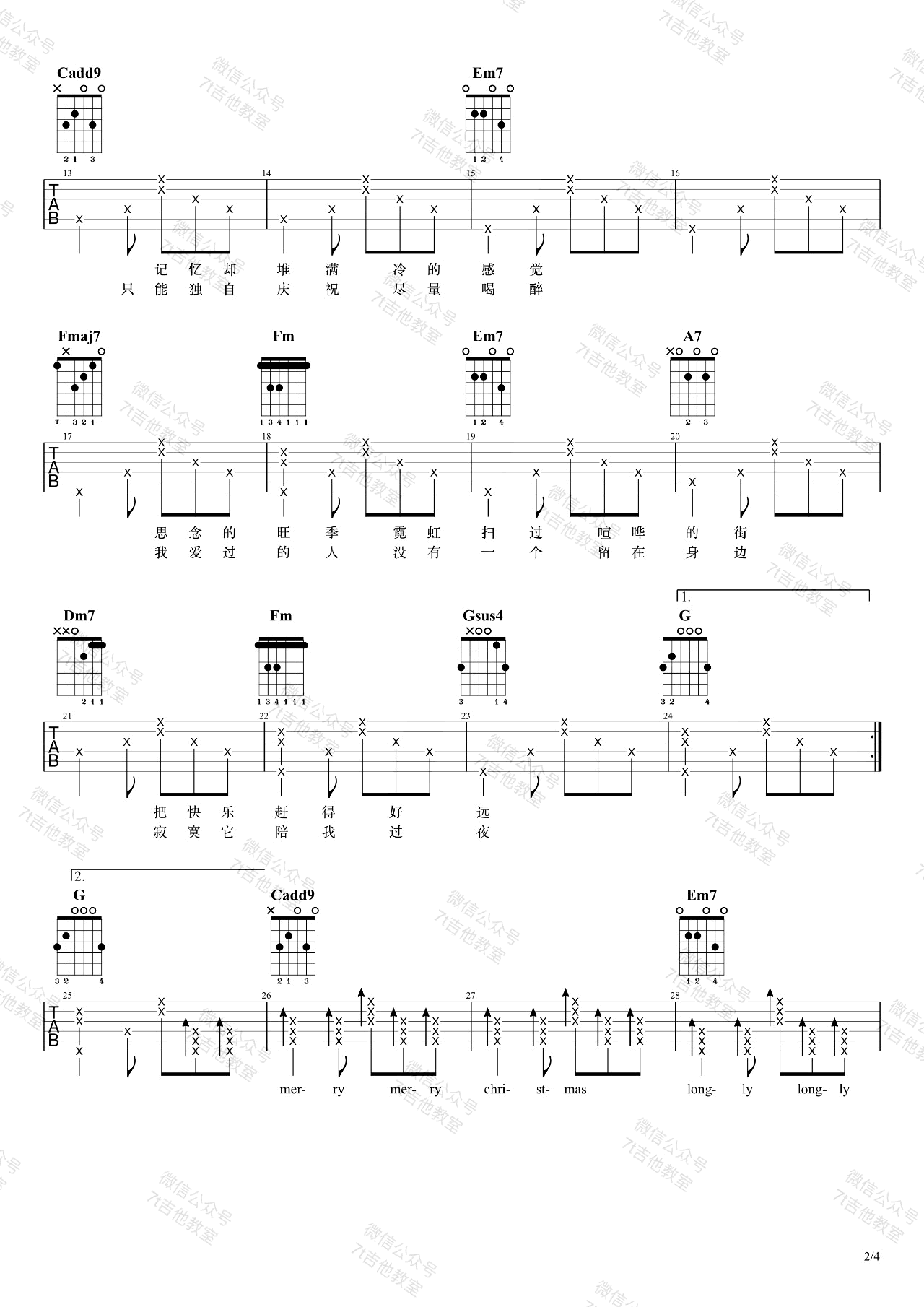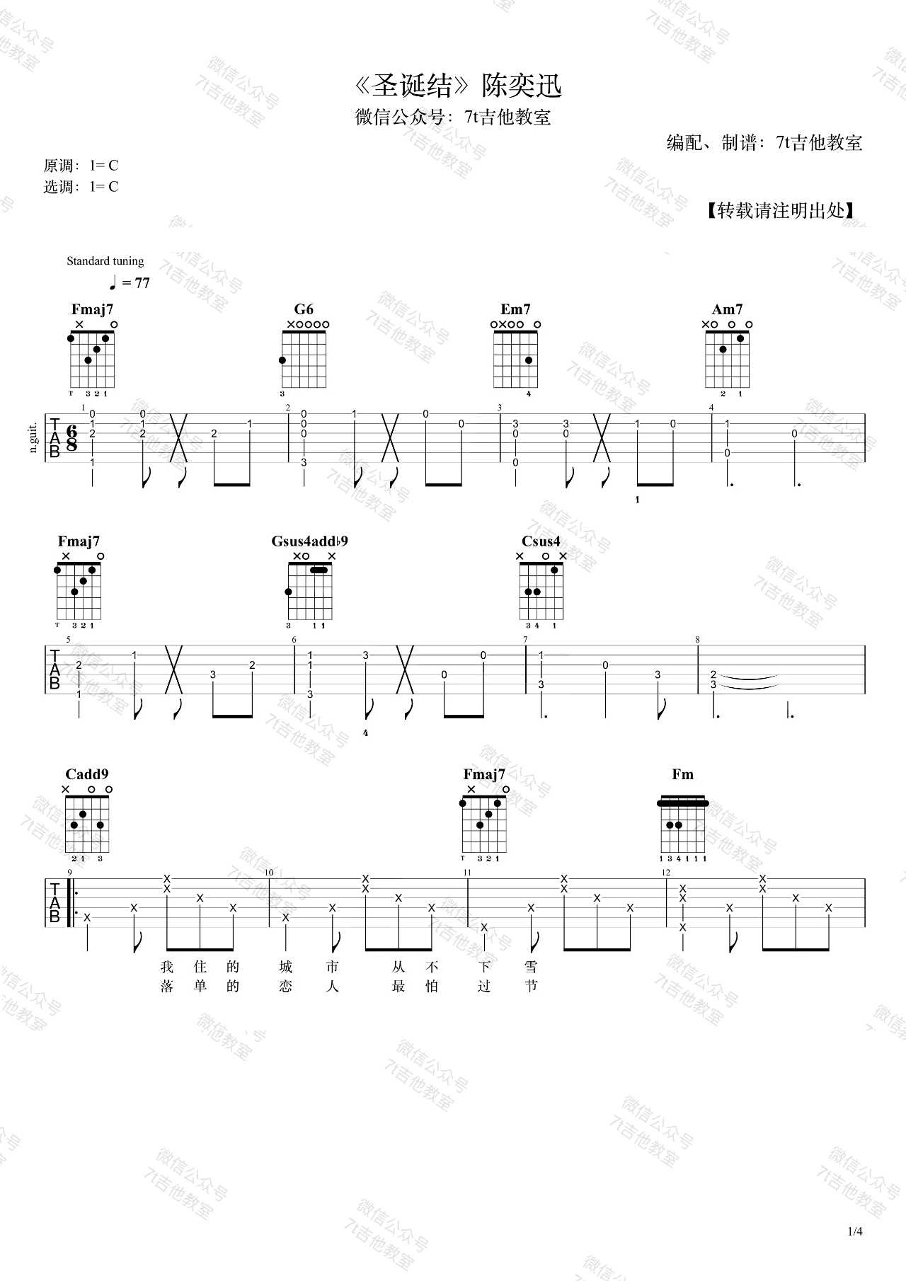 - 圣诞结吉他谱_陈奕迅_C调六线谱_弹唱演示视频