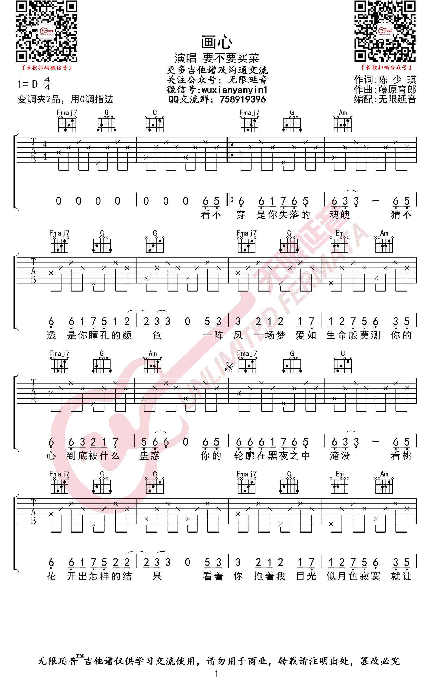 - 画心吉他谱_要不要买菜/张靓颖_C调男生版