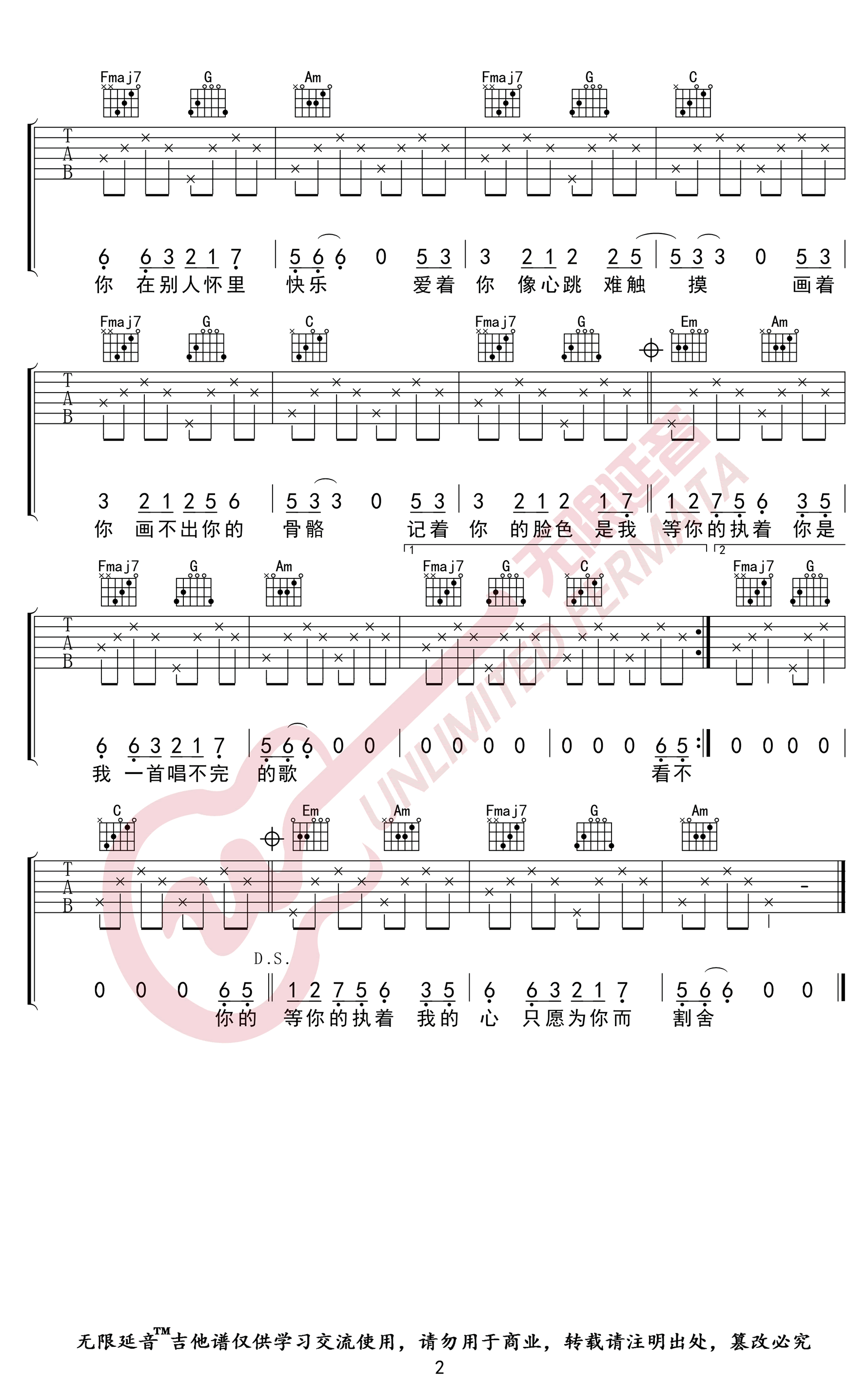 - 多情种吉他谱_要不要买菜_C调_弹唱六线谱