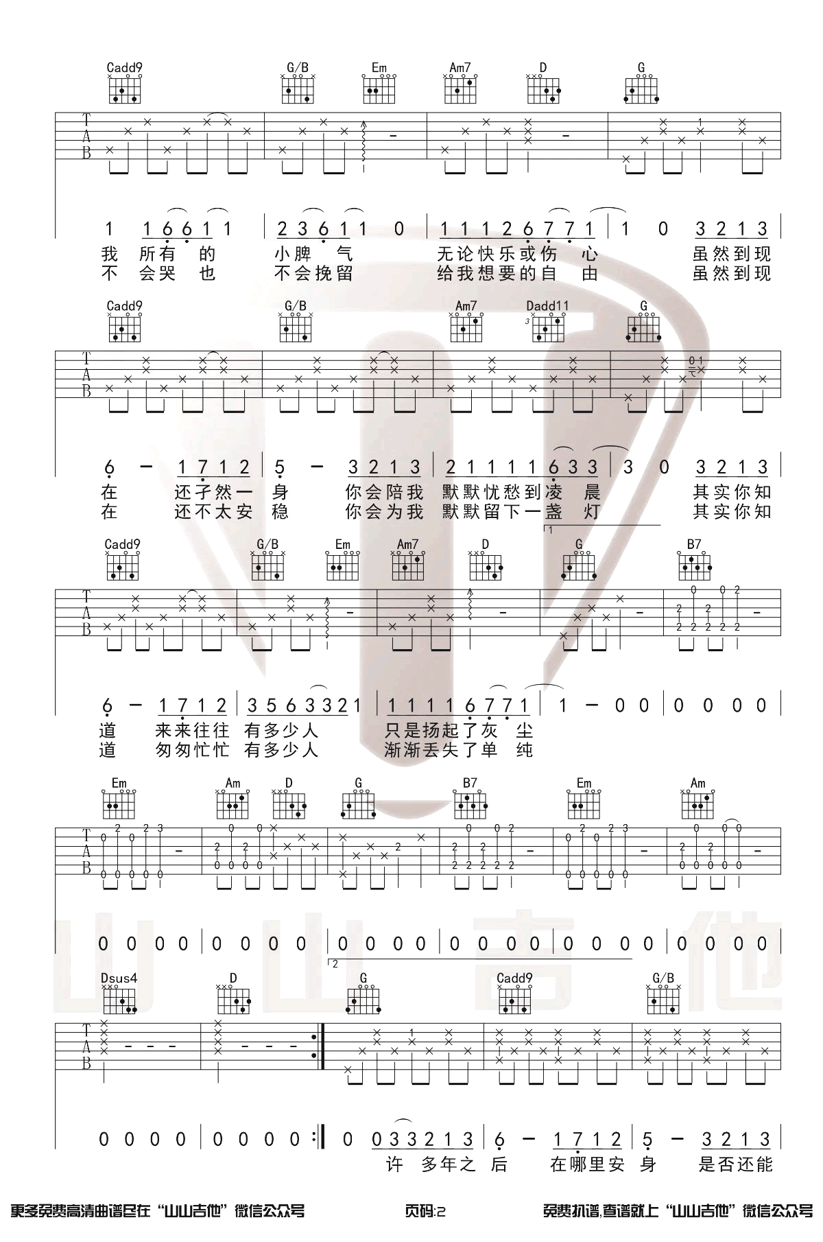- 下山吉他谱_要不要买菜_G调六线谱_高清版