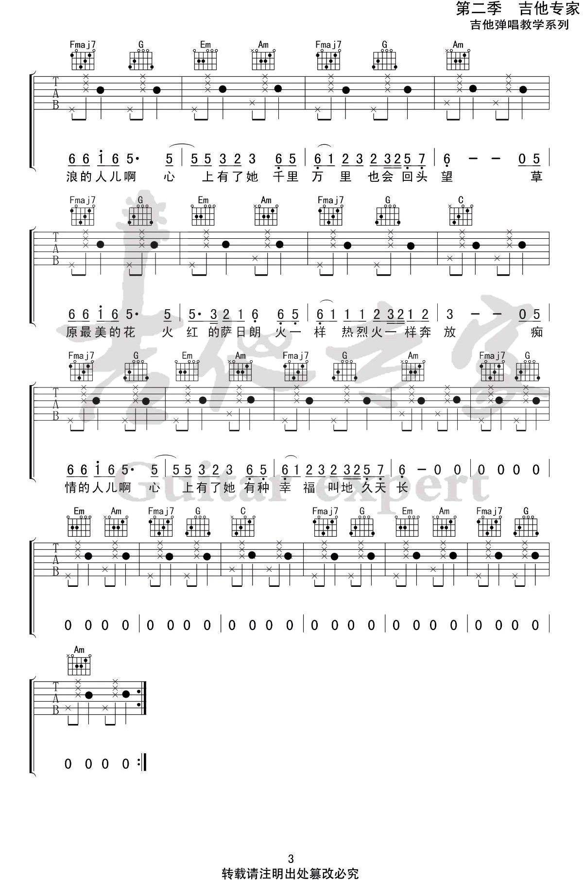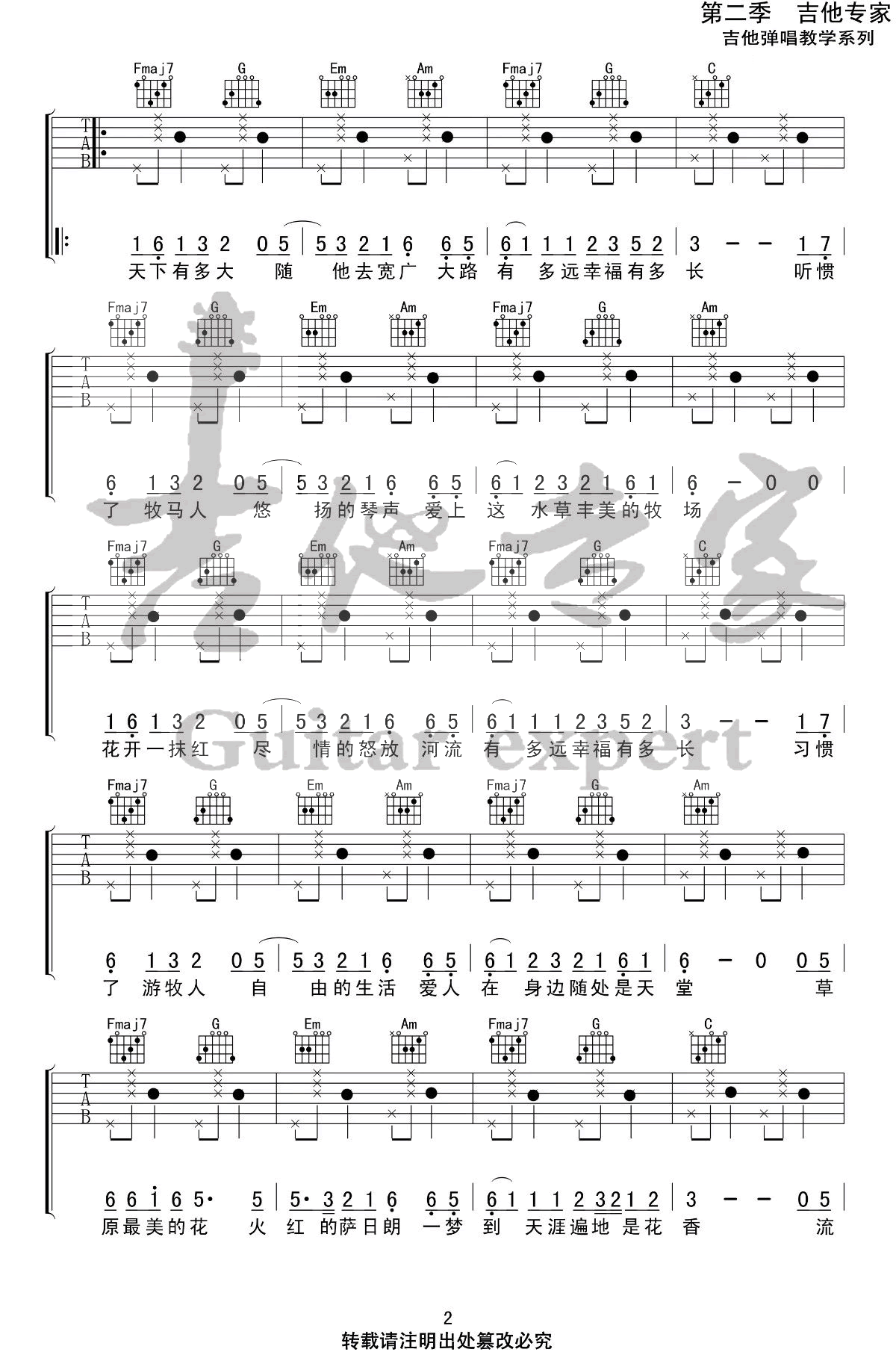 - 火红的萨日朗吉他谱_C调弹唱谱_要不要买菜_吉他演示视频