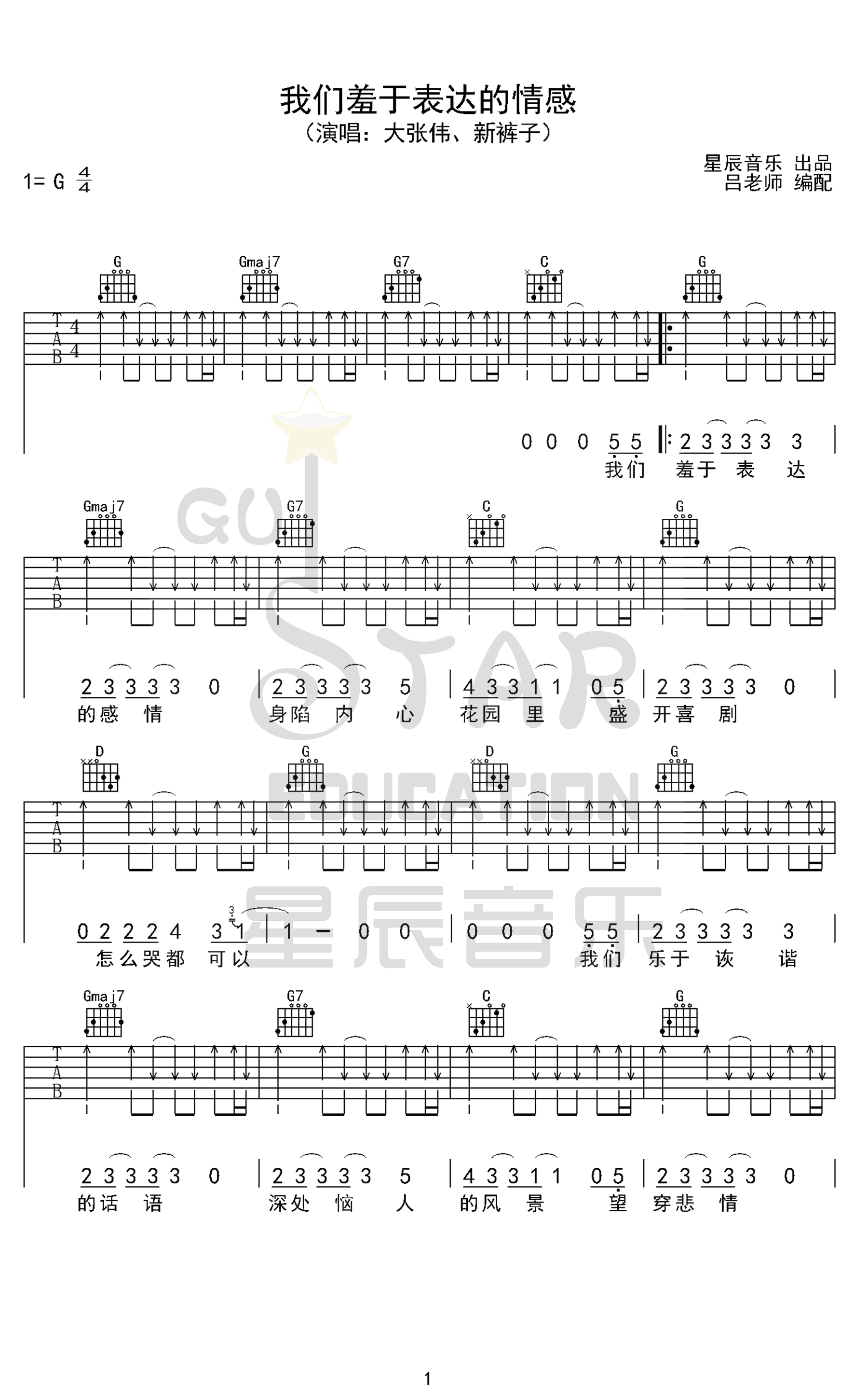 - 我们羞于表达的感情吉他谱_大张伟新裤子_G调弹唱谱
