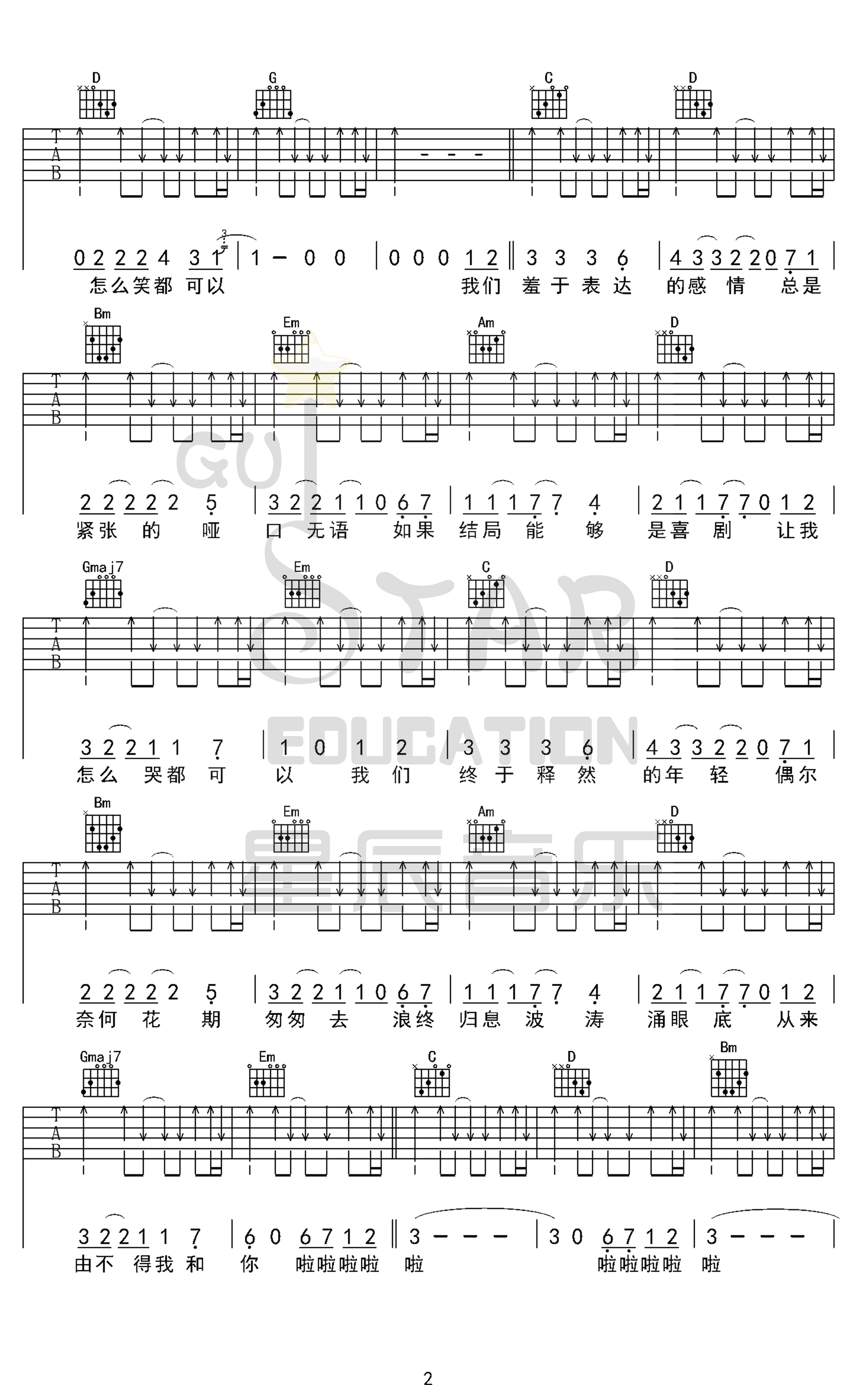 - 虎二《你一定要幸福》吉他谱_G调六线谱_吉他教学视频