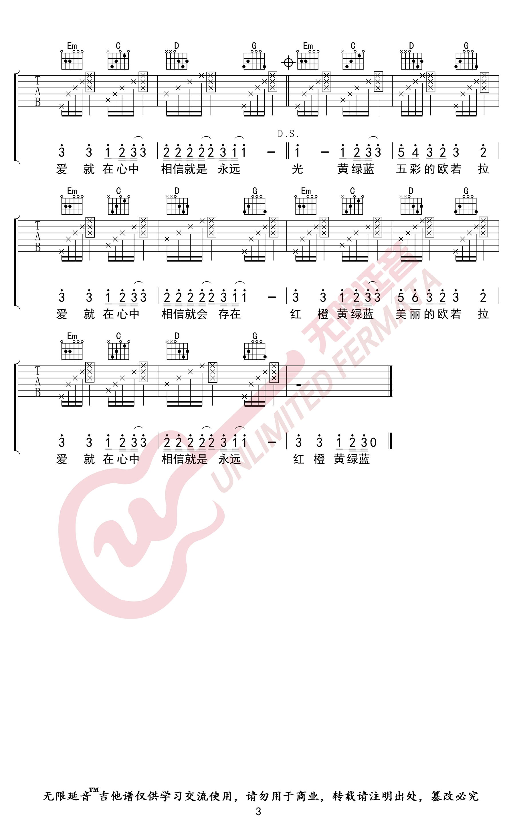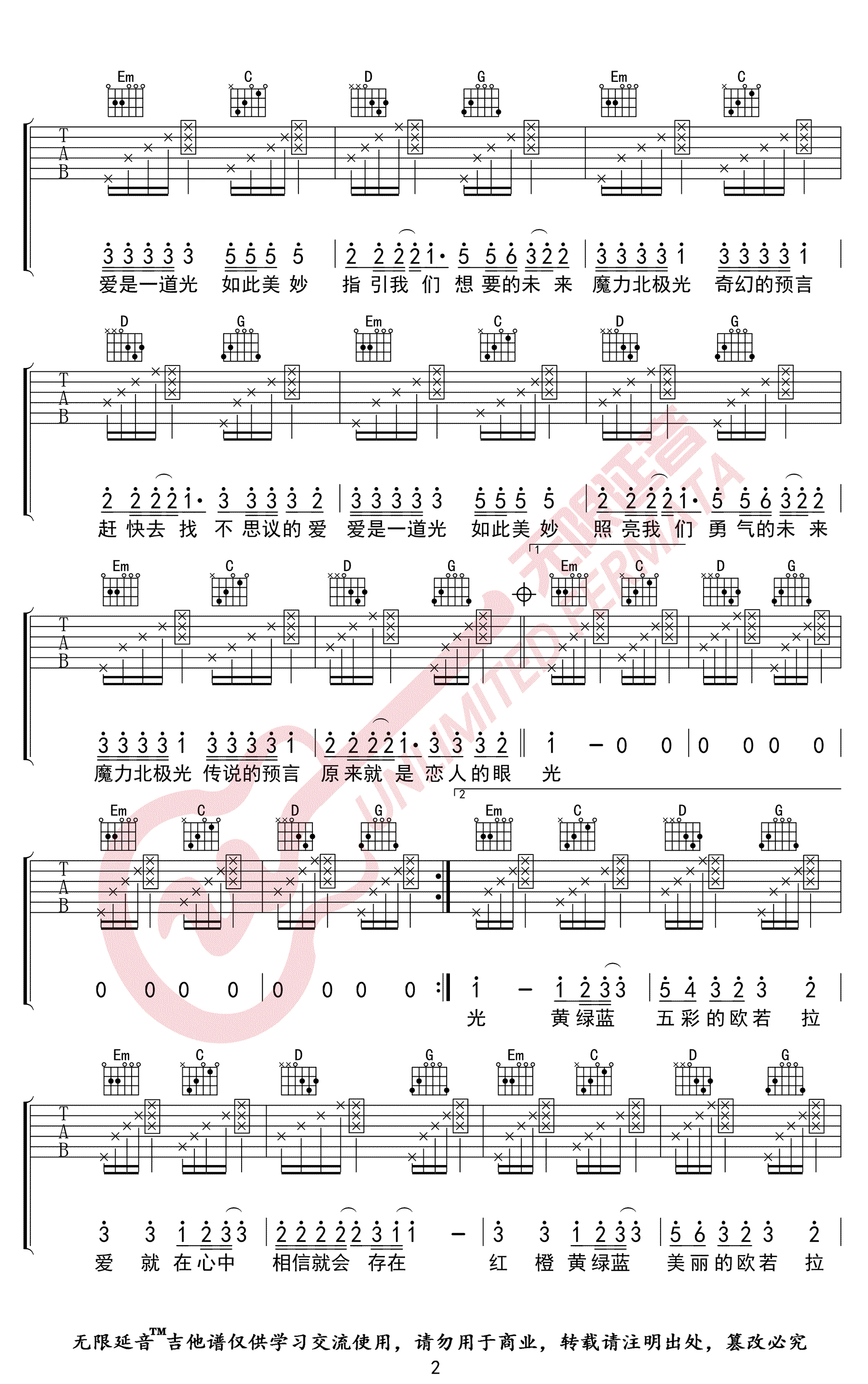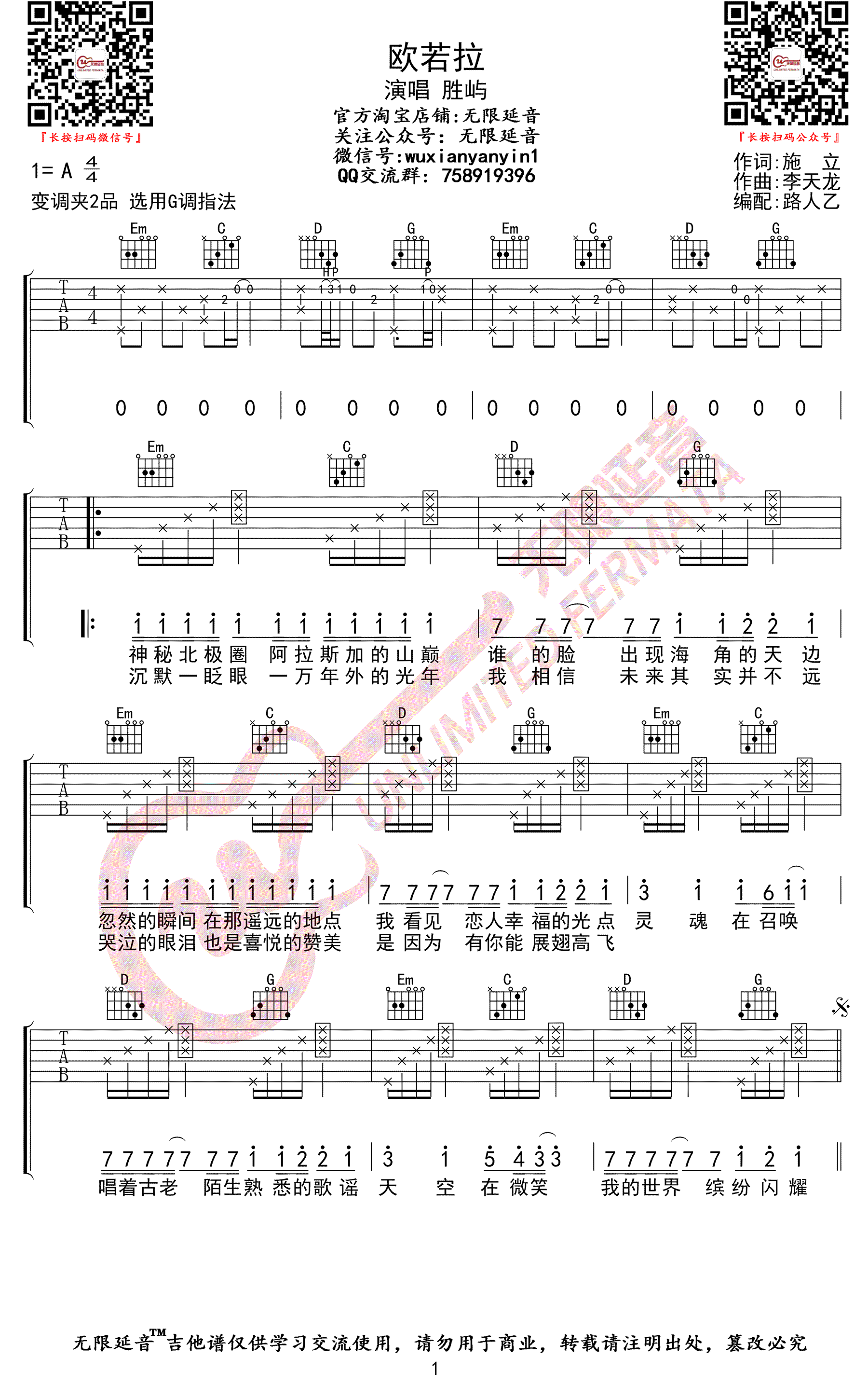 - 欧若拉吉他谱_胜屿版本_G调_弹唱图片谱