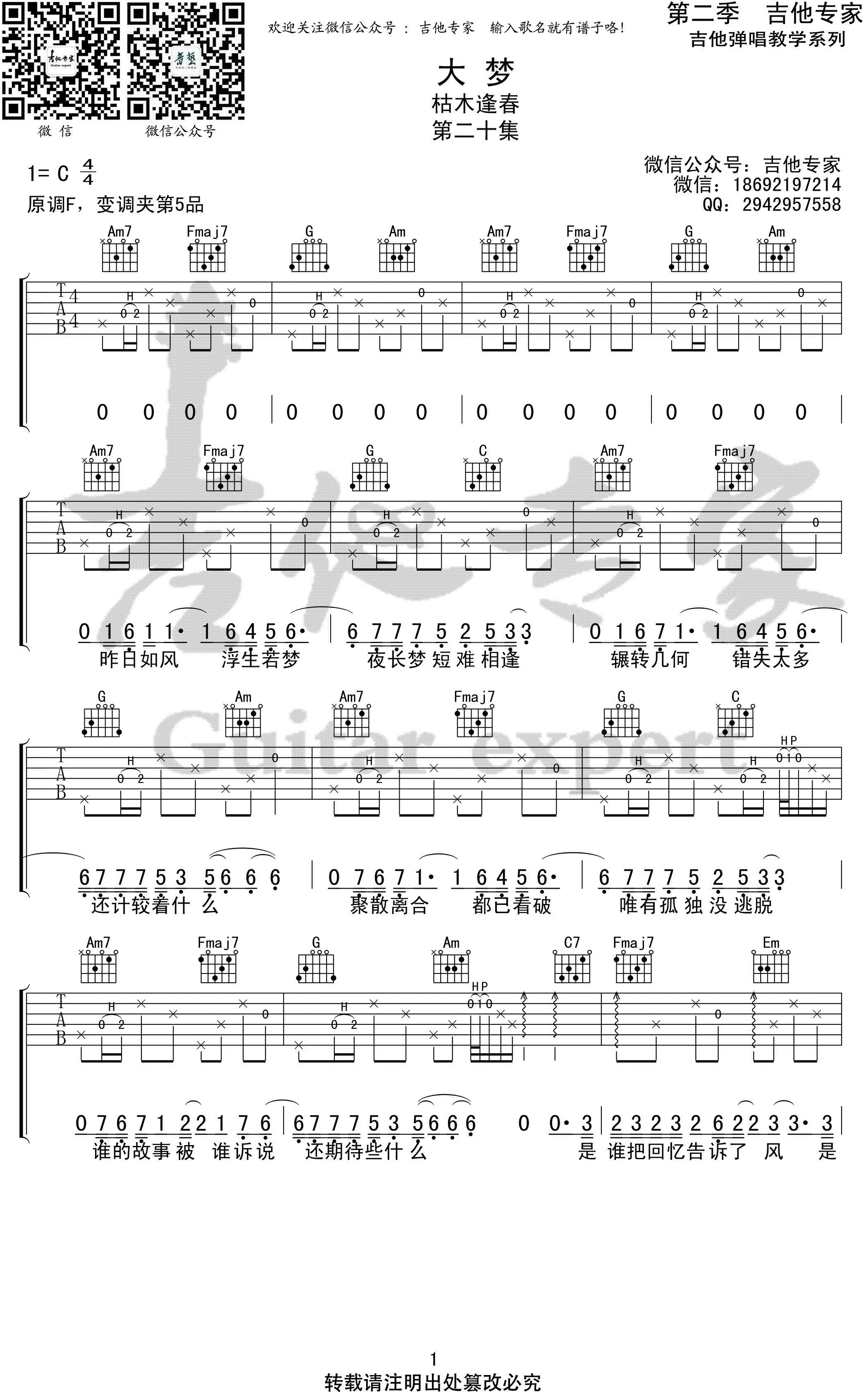 - 大梦吉他谱_枯木逢春_C调弹唱谱_高清版