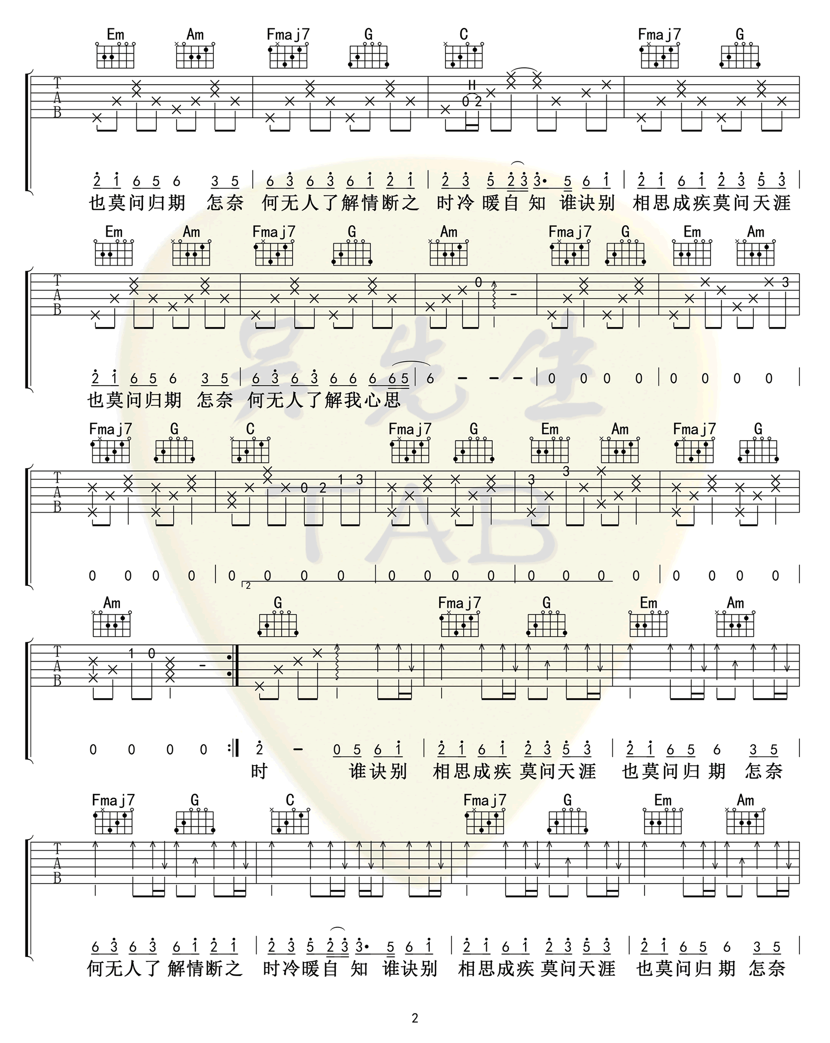 - 多情种吉他谱_要不要买菜_C调_弹唱六线谱