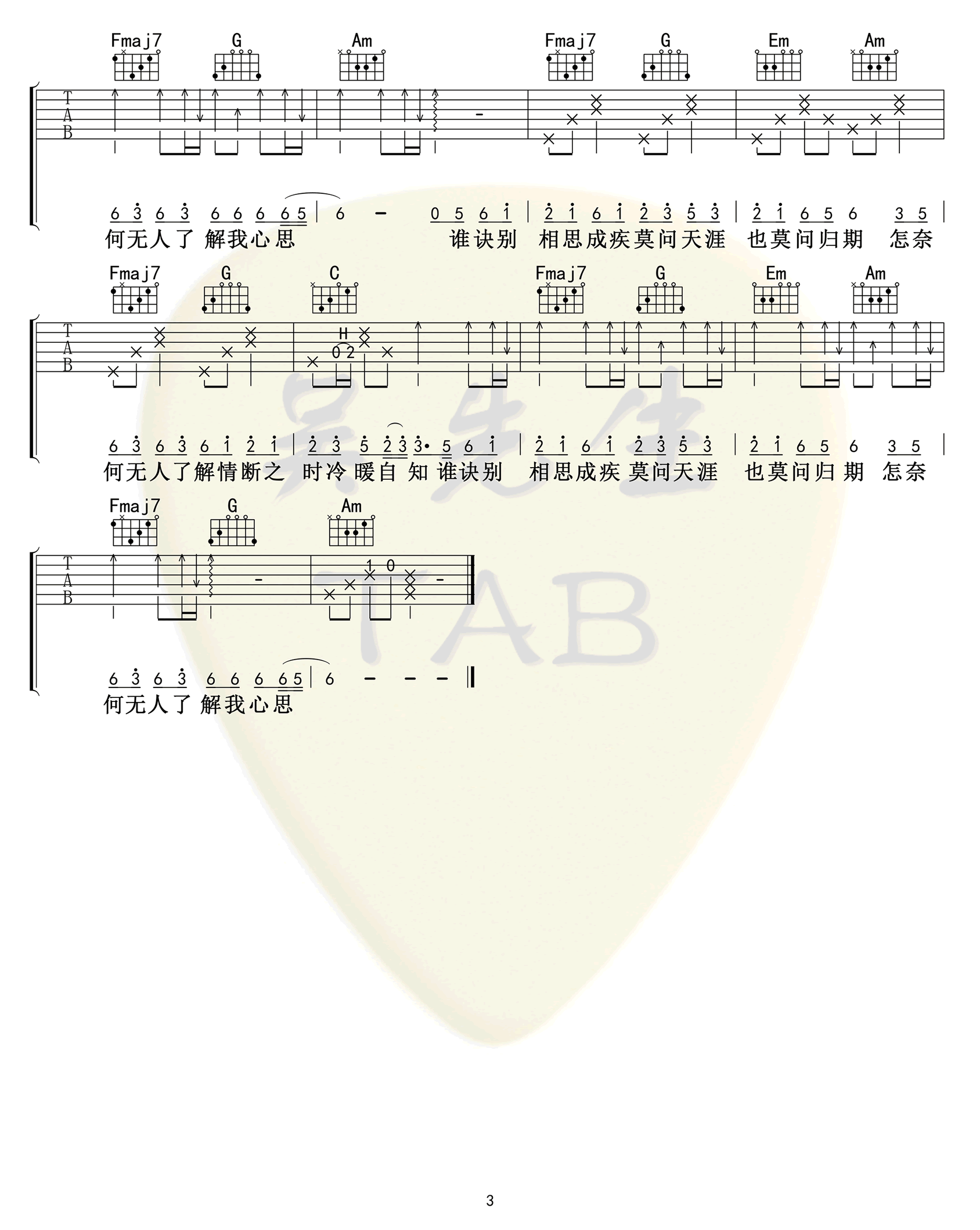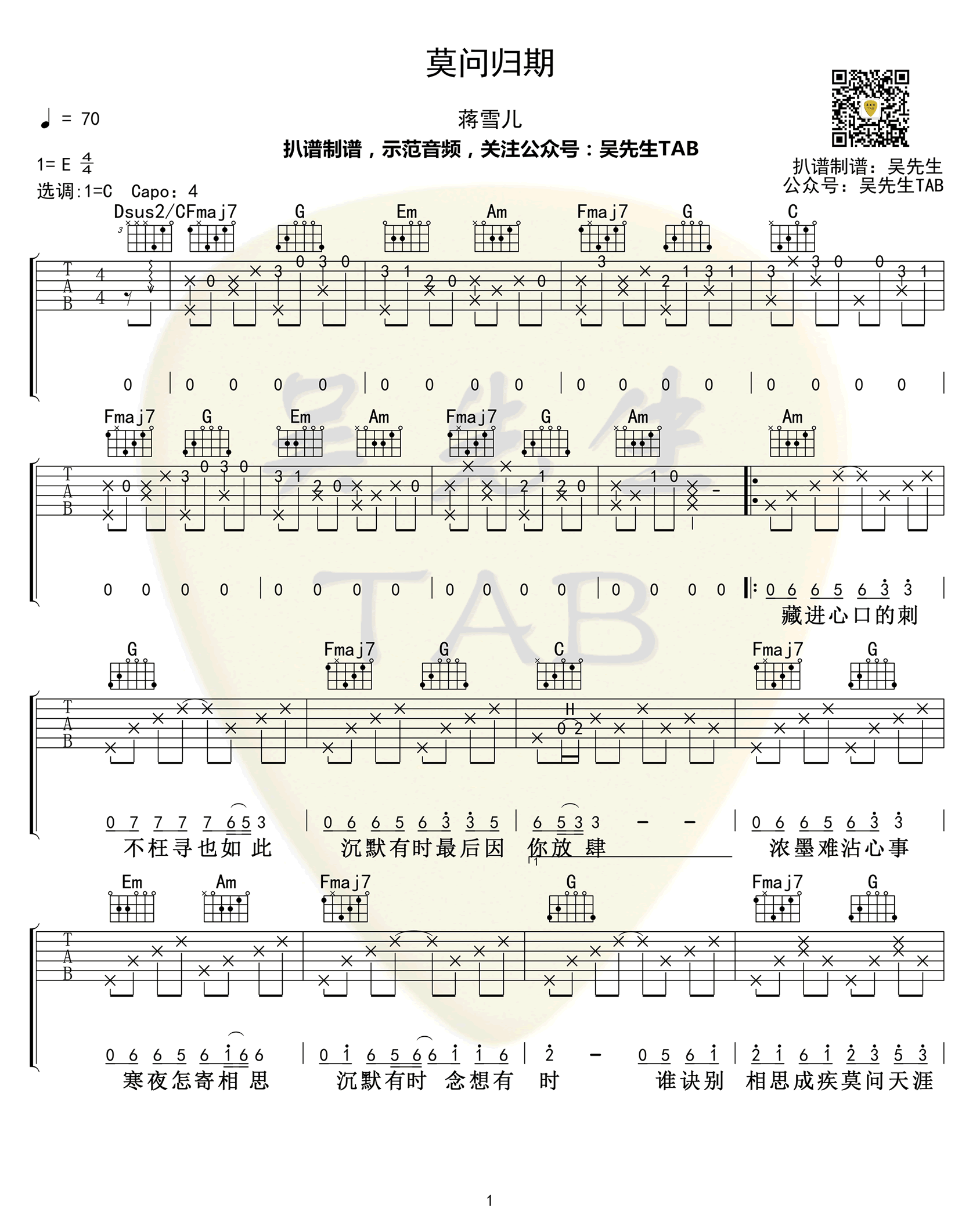 - 莫问归期吉他谱_蒋雪儿_C调_弹唱六线谱_古风歌曲