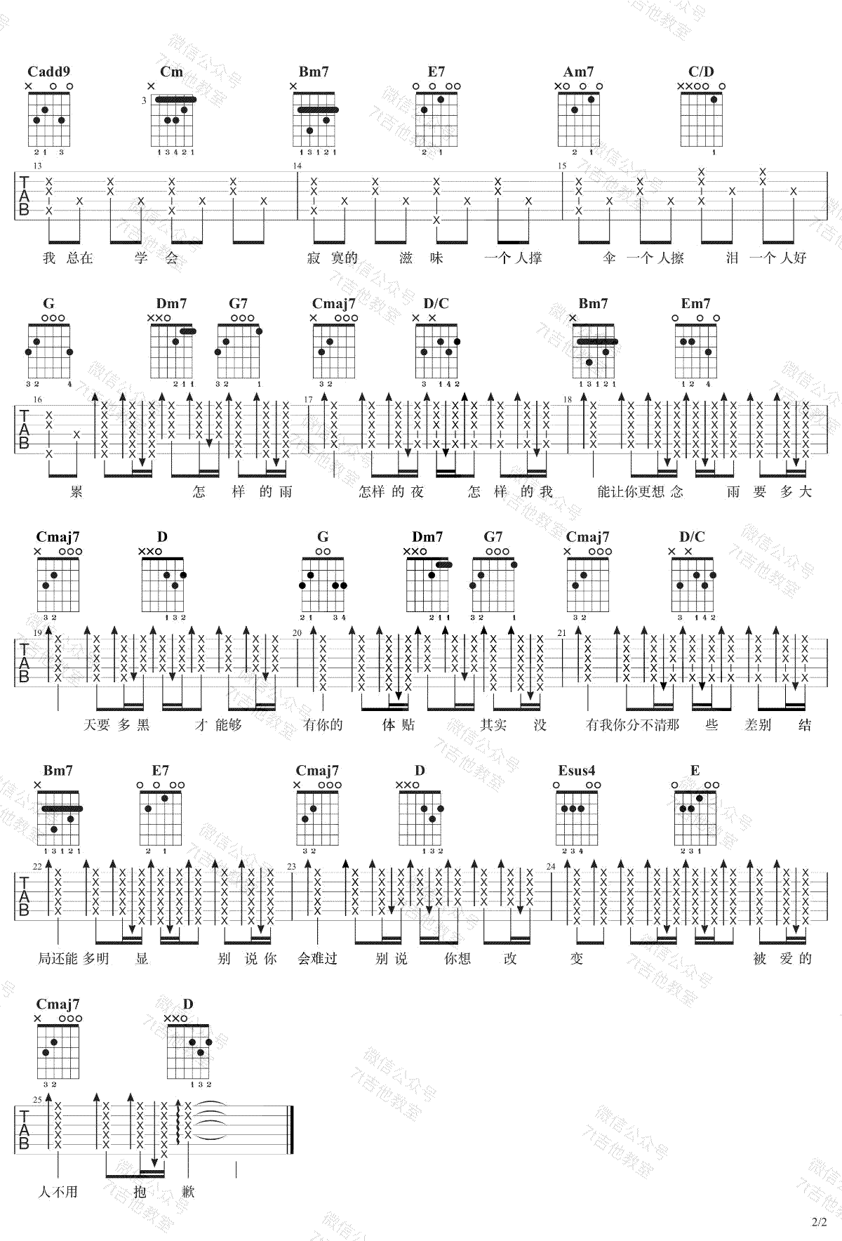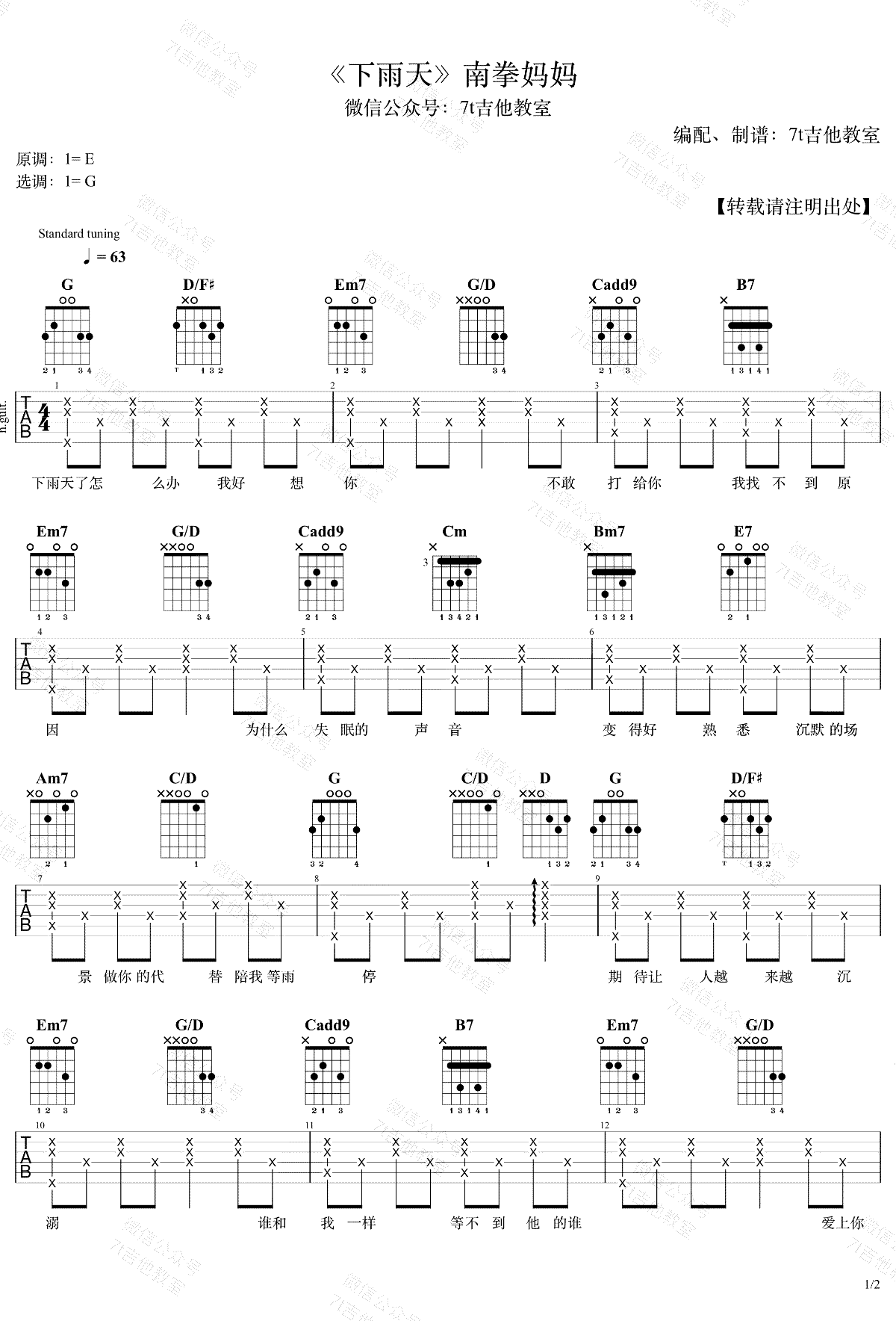 - 南拳妈妈《下雨天》吉他谱_G调弹唱谱_吉他演示视频