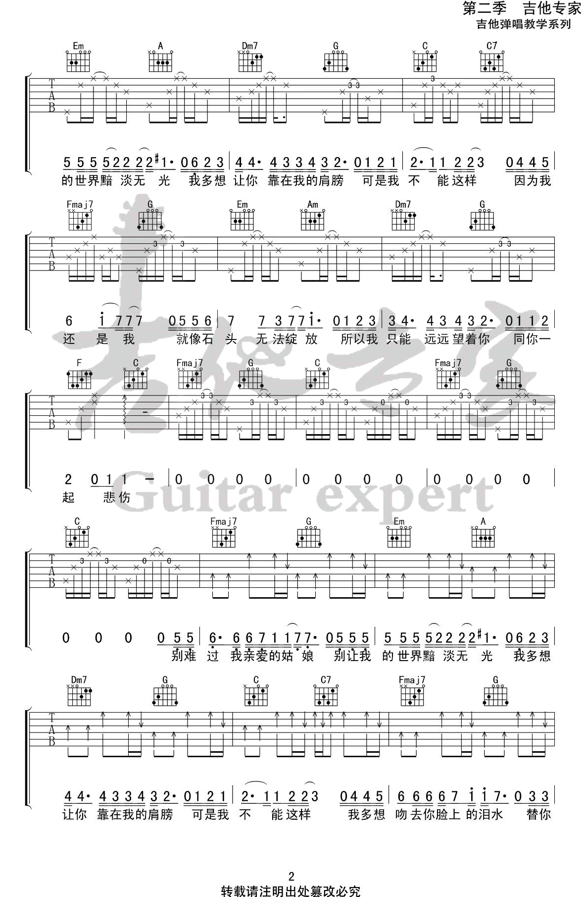 - 桥边姑娘吉他谱_海伦_C调入门版+原版_六线谱