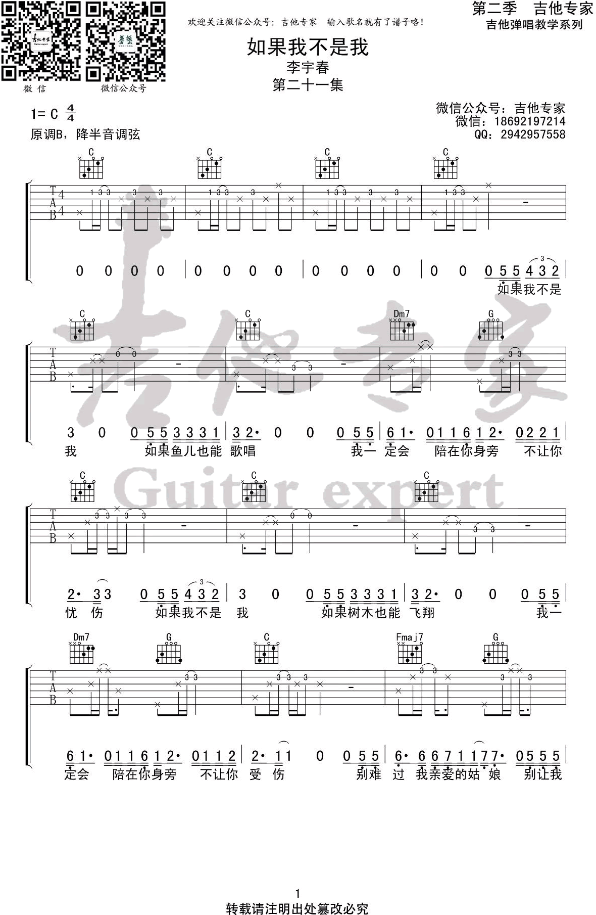 - 如果我不是我吉他谱_李宇春《半个喜剧》主题曲