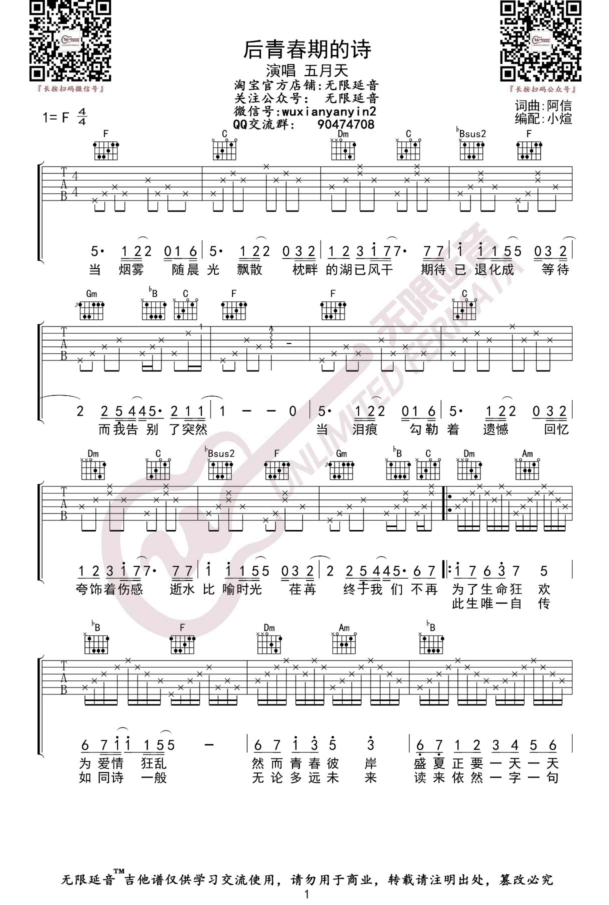- 后青春期的诗吉他谱_五月天_弹唱六线谱