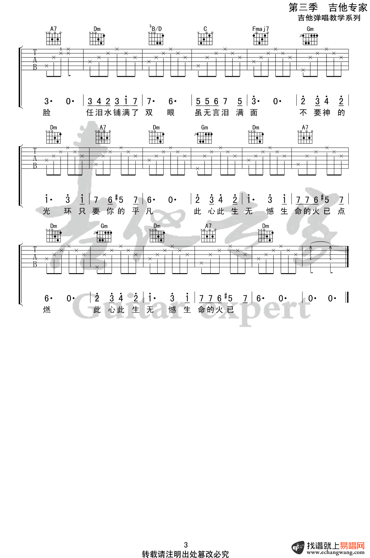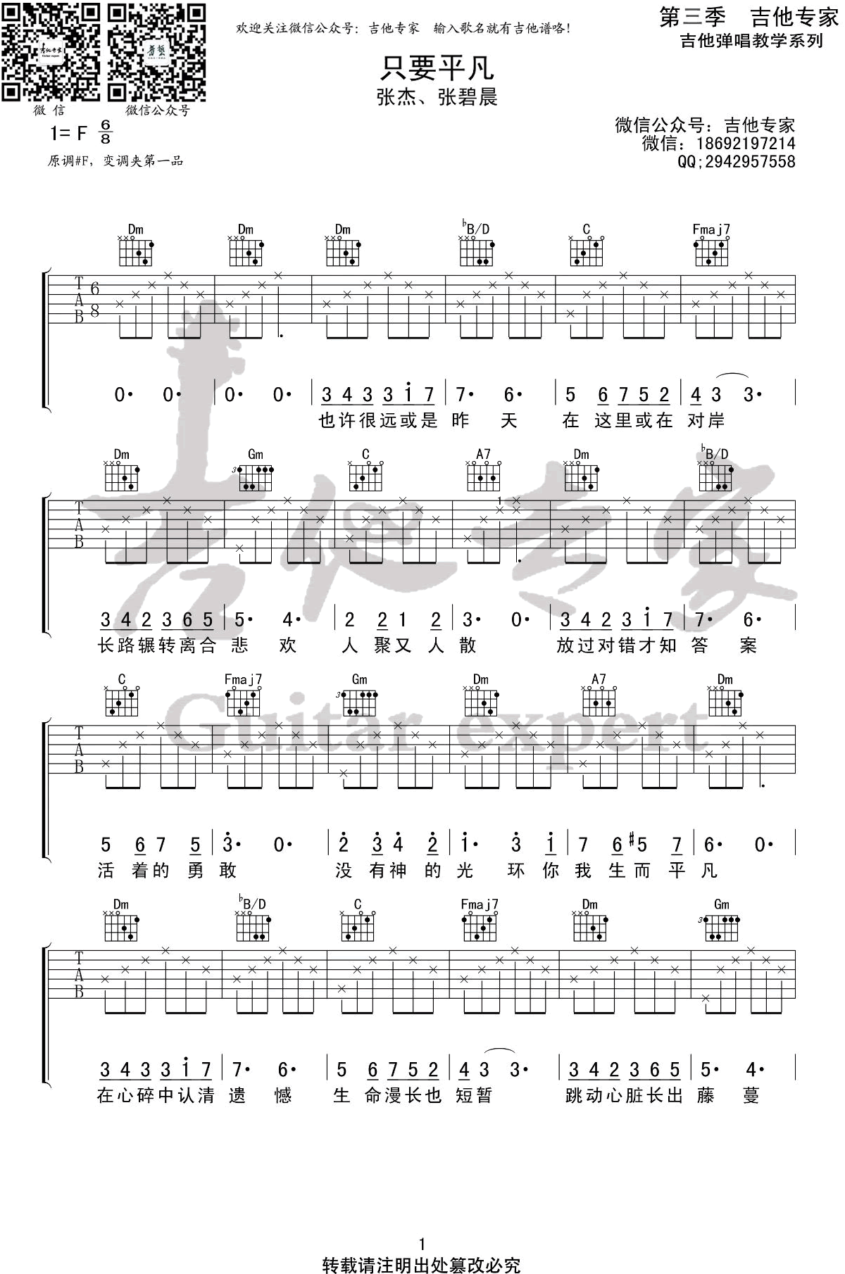- 只要平凡吉他谱_F调_张杰/张碧晨_适合弹唱谱