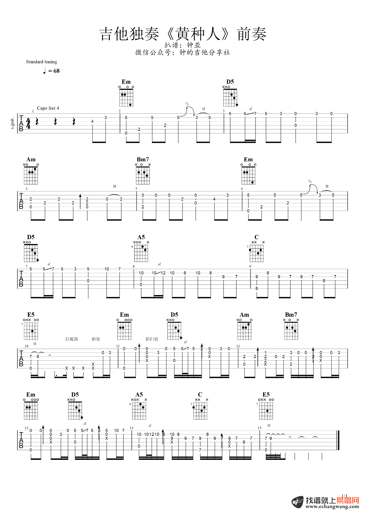 - 黄种人指弹谱_谢霆锋_前奏演示视频_吉他独奏谱