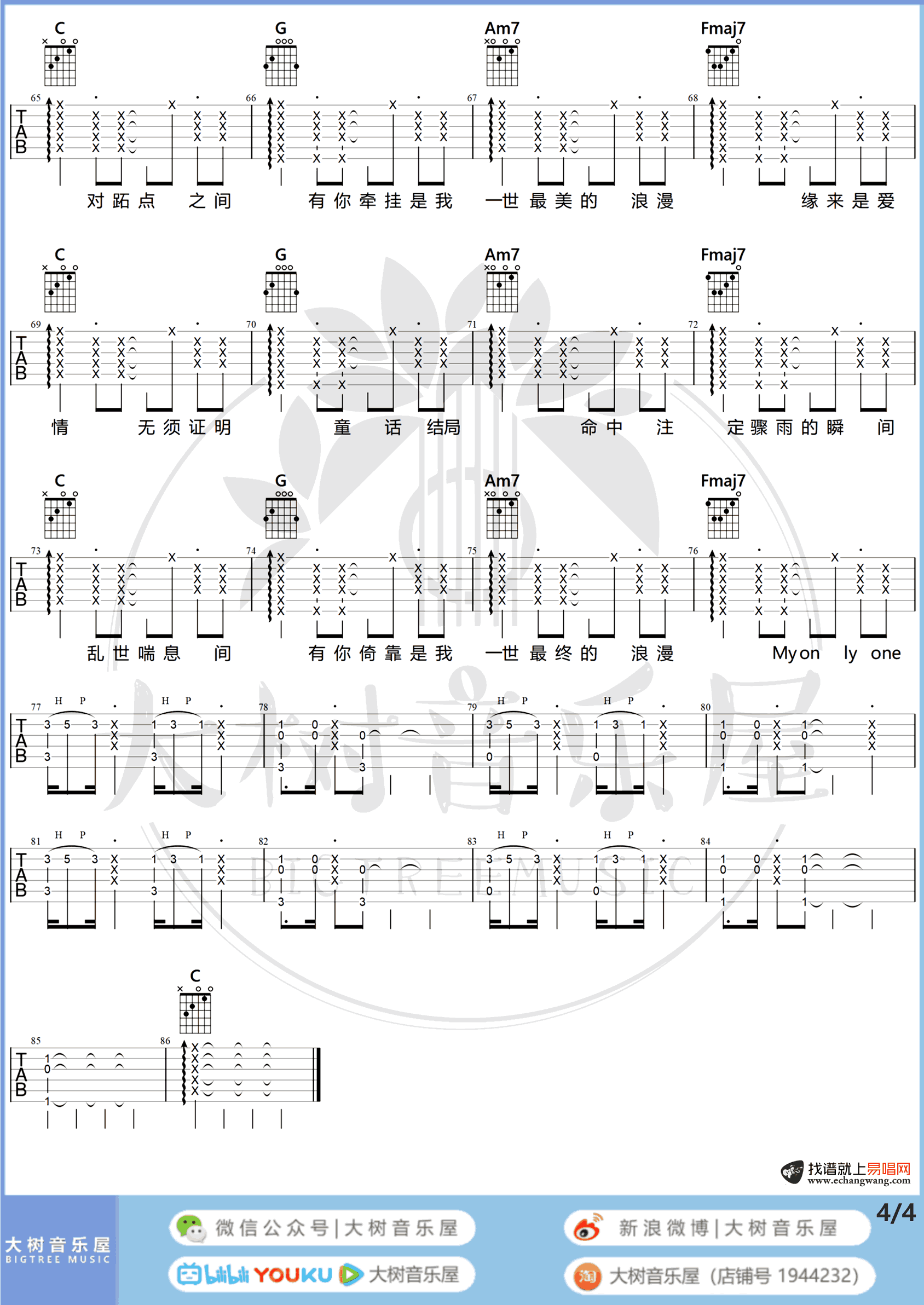 - My Only One吉他谱_郑中基_C调_吉他弹唱演示