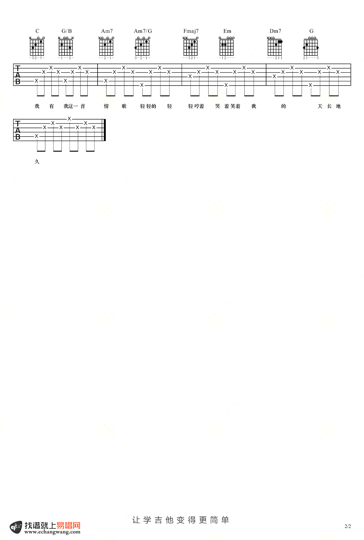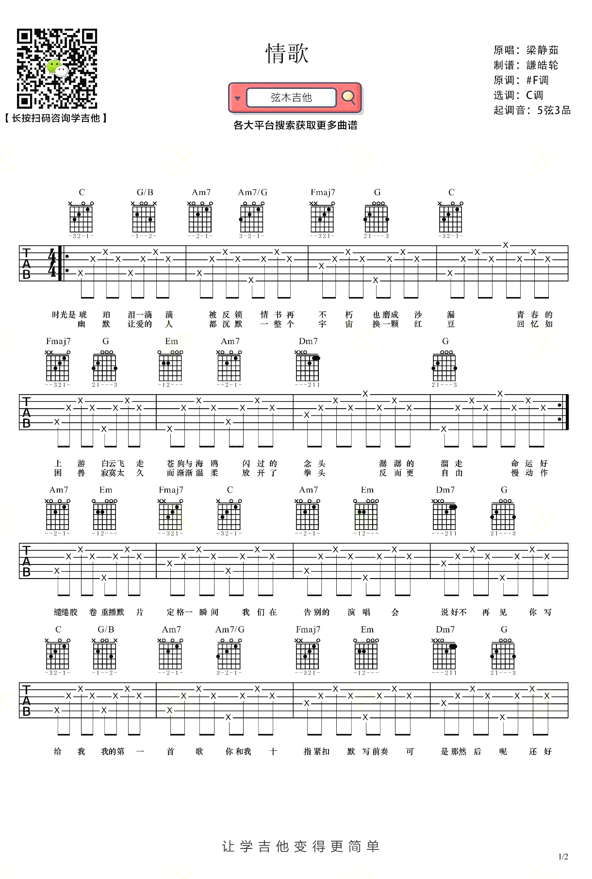 - 情歌吉他谱_梁静茹_C调简单版_弹唱谱
