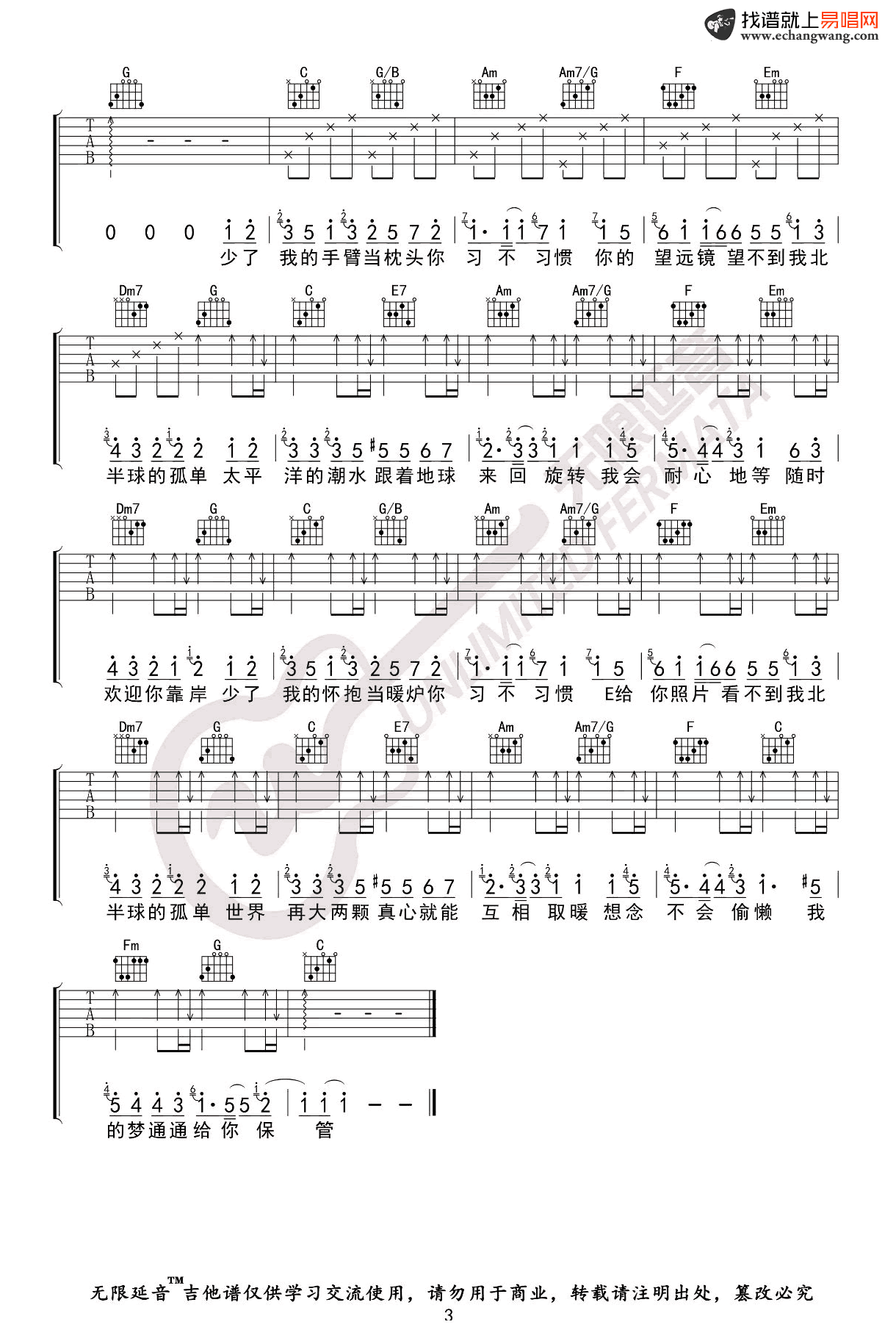 - 三号线吉他谱_刘大壮_C调弹唱谱_完整版六线谱