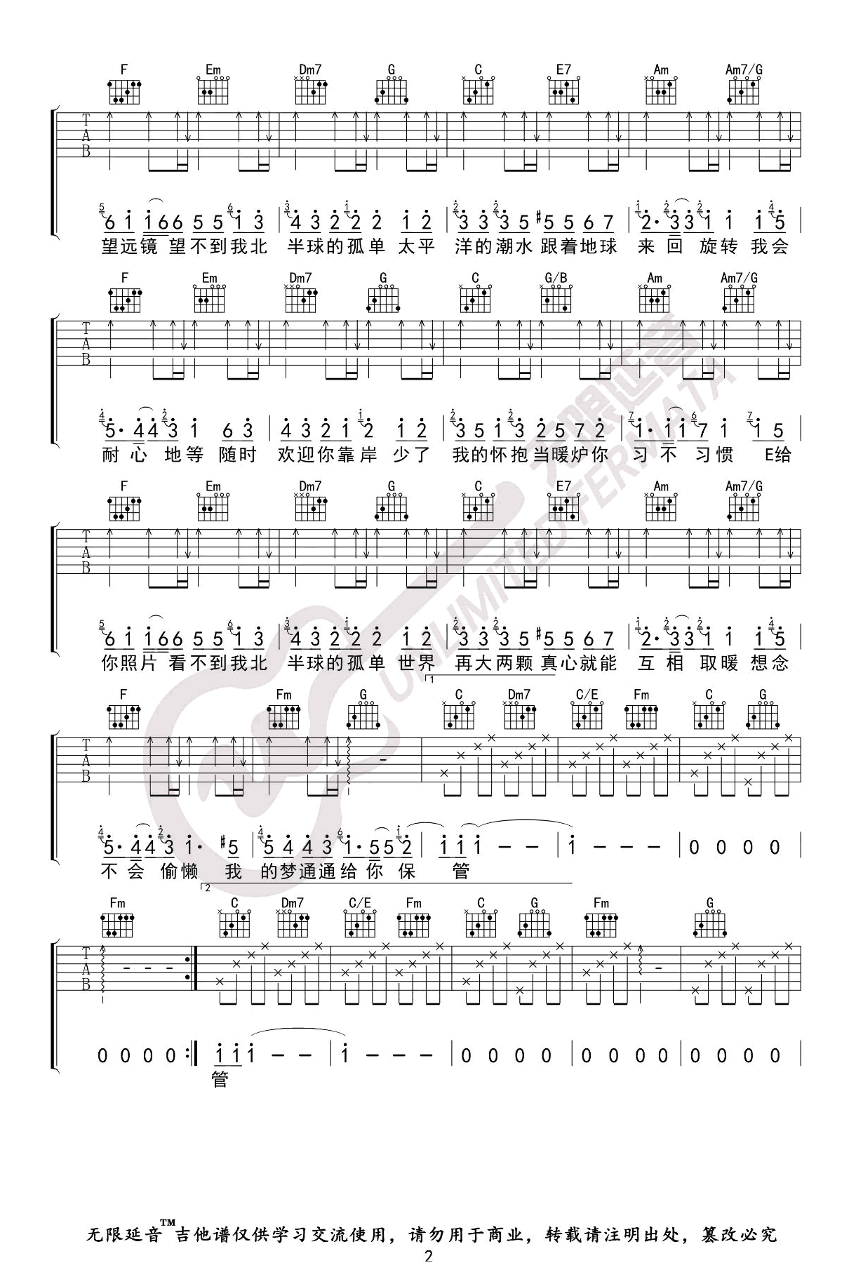 - 孤单北半球吉他谱_C调_欧得洋/梁静茹_弹唱谱