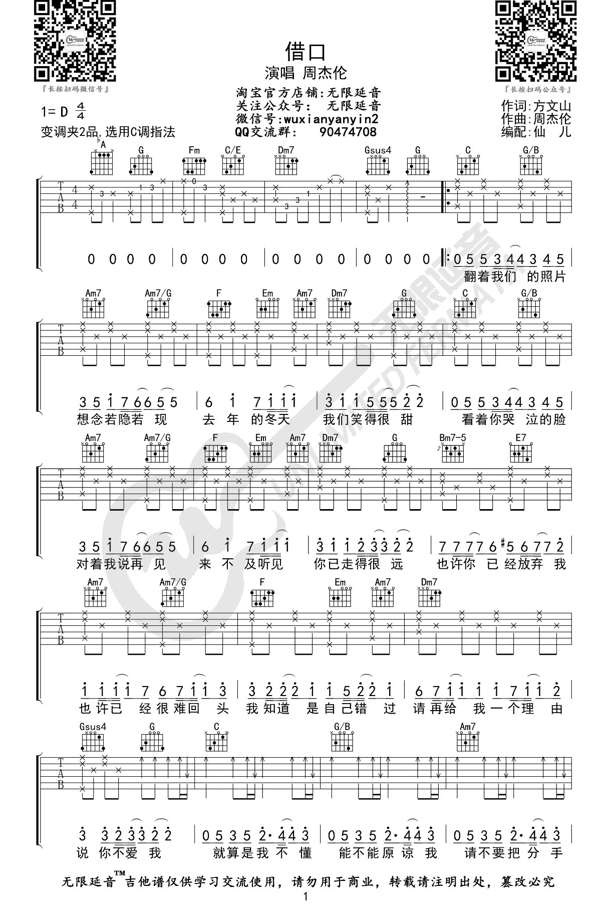 - 借口吉他谱C调_周杰伦_弹唱六线谱(三张图片)