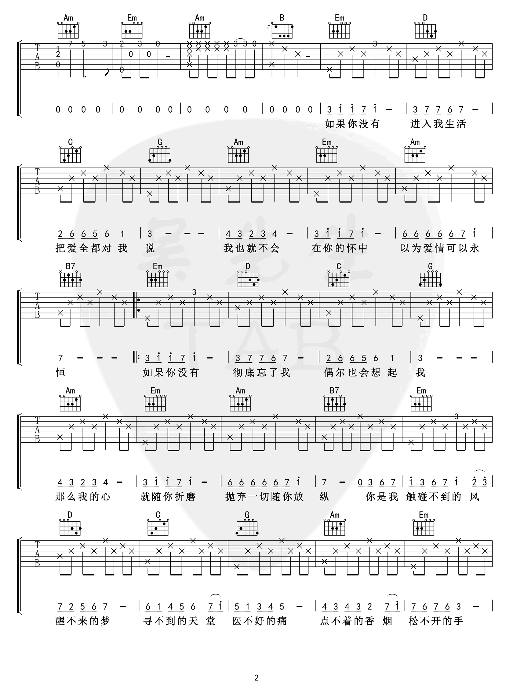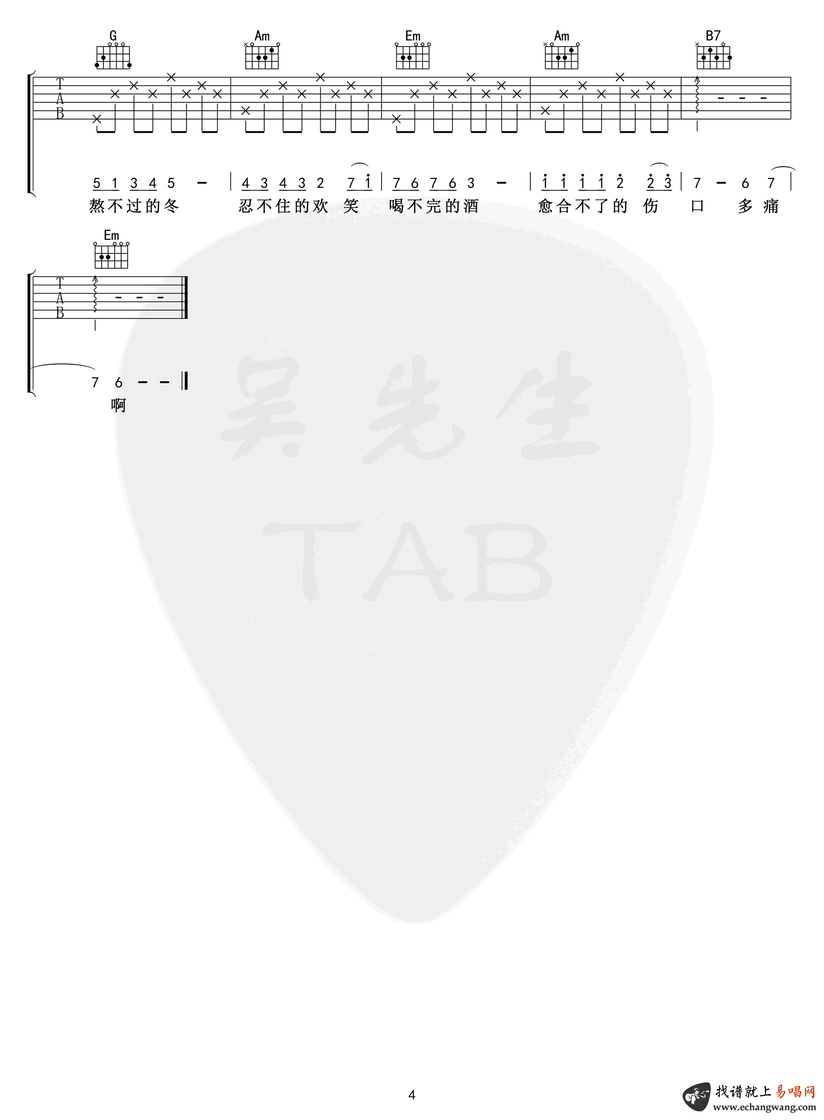 - 间距吉他谱_EN_G调原版_《间距》吉他弹唱六线谱