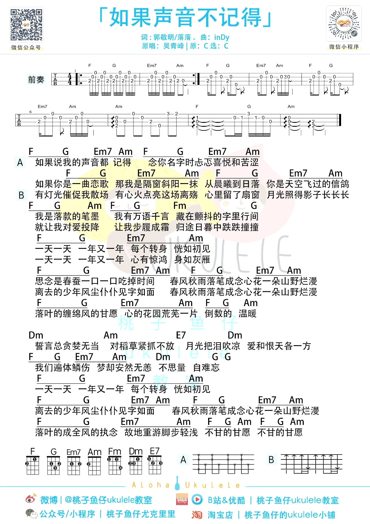 - 如果声音不记得吉他谱_吴青峰_C调弹唱谱+尤克里里谱