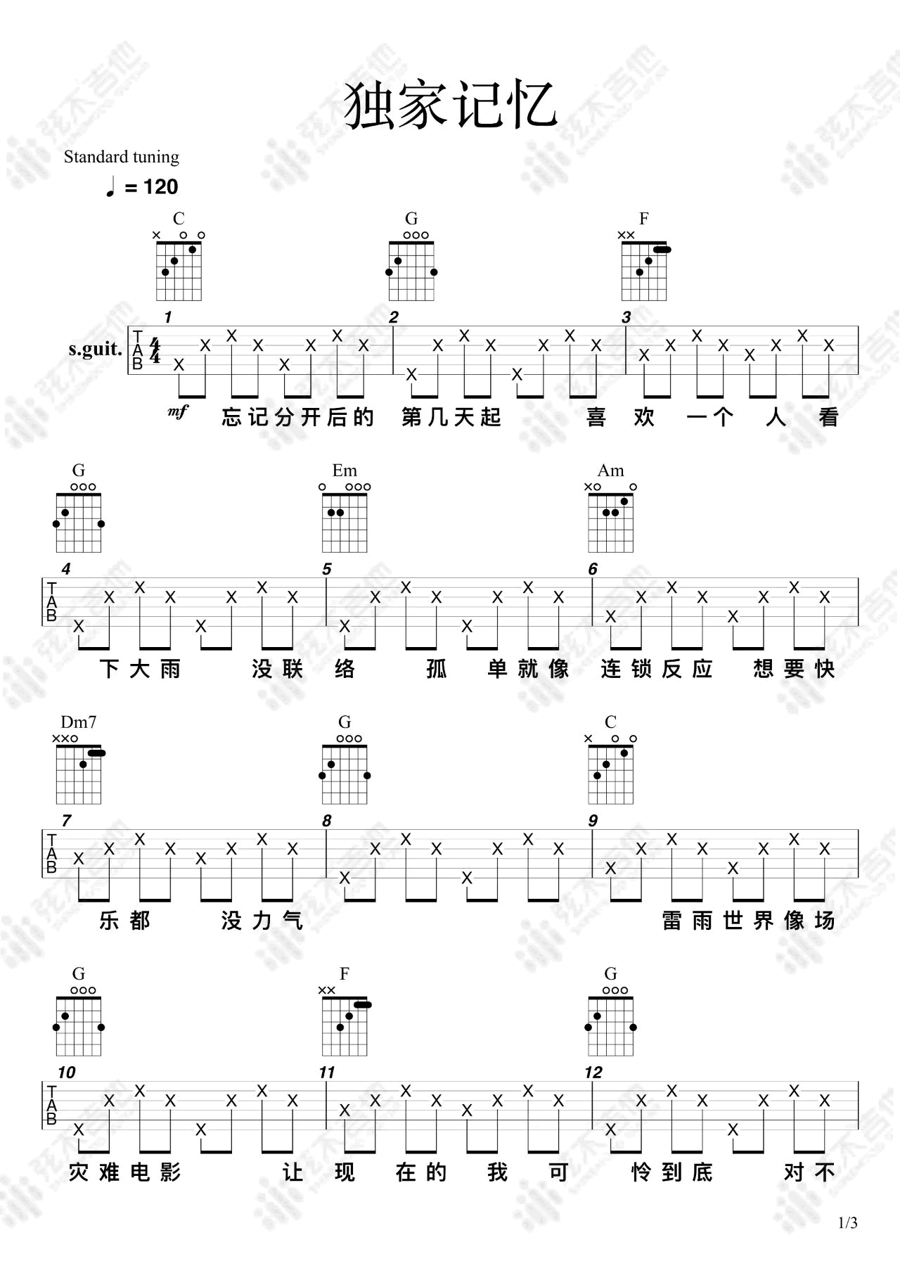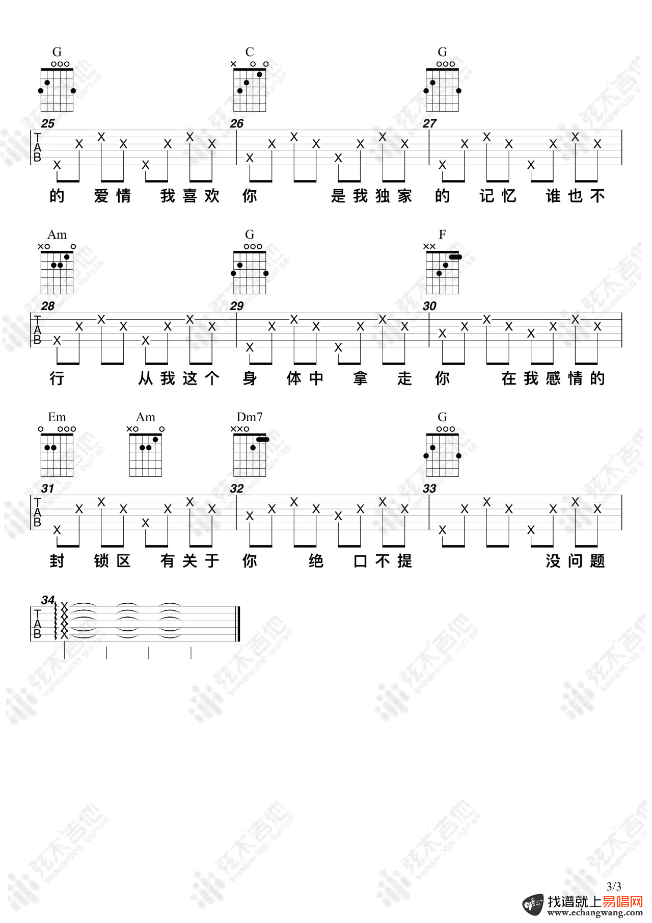 - 三号线吉他谱_刘大壮_C调弹唱谱_完整版六线谱