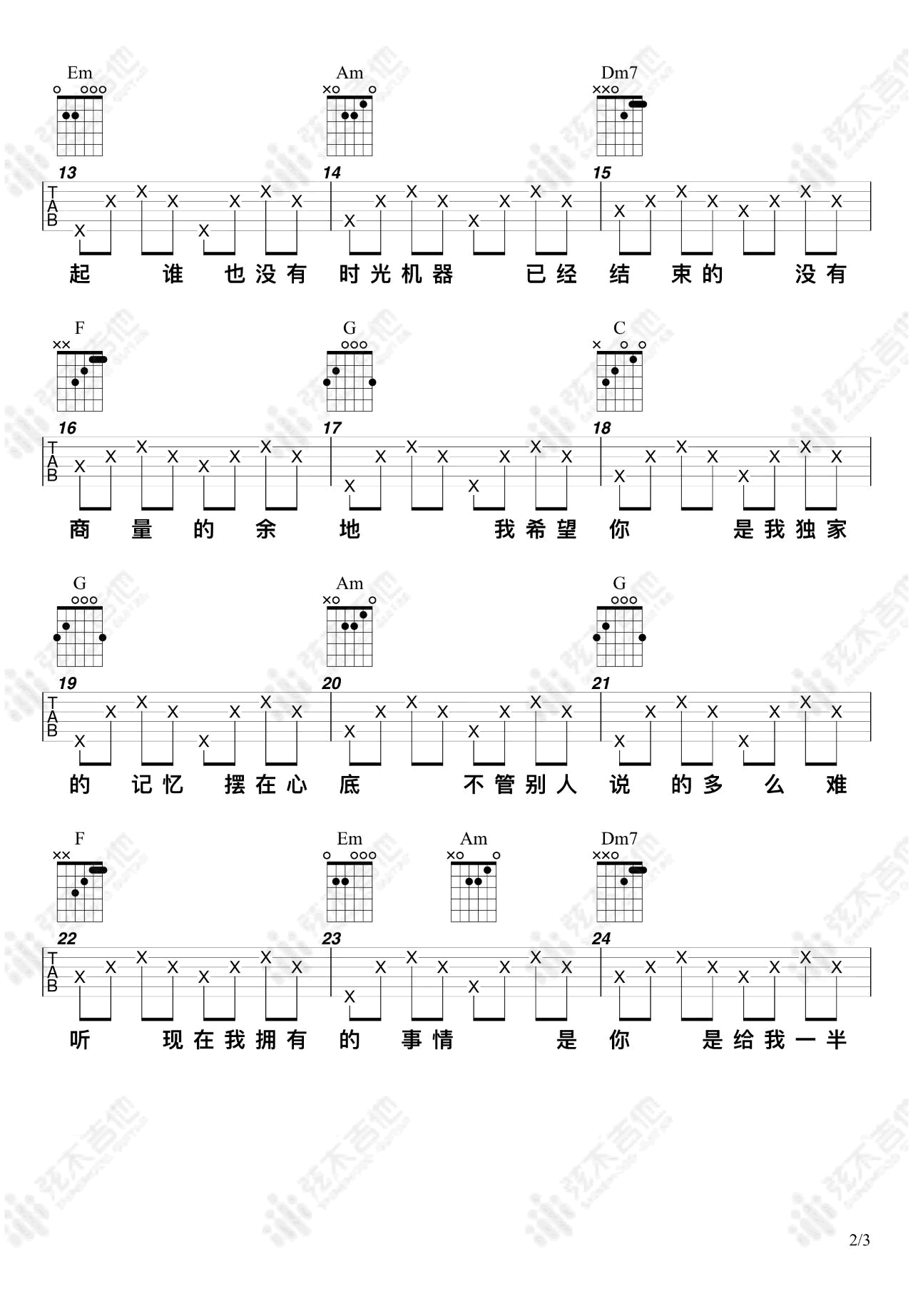 - 执迷不悟吉他谱_小乐哥_C调弹唱谱_图片谱