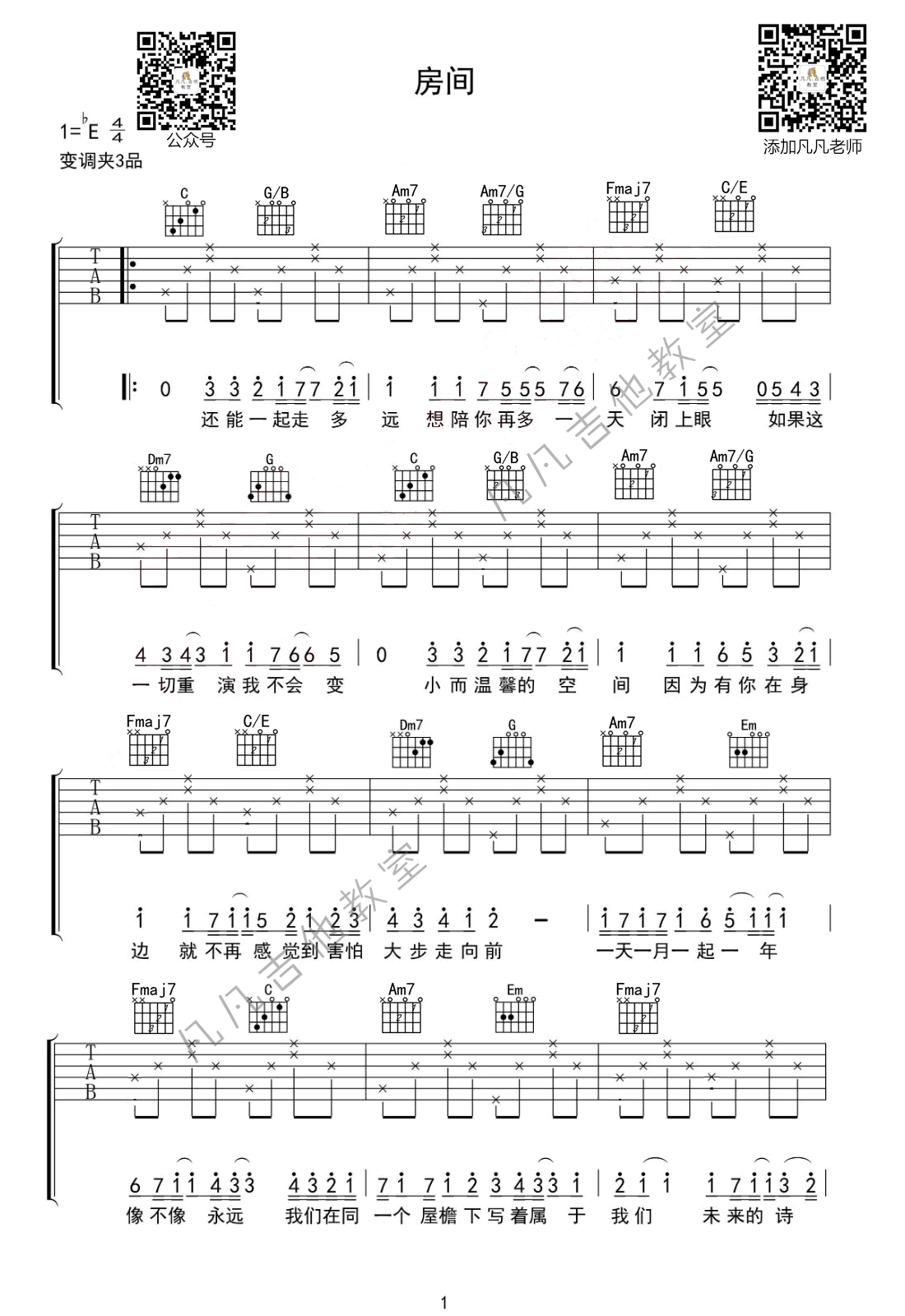- 刘瑞琦《房间》吉他谱_C调指法_吉他弹唱教学视频
