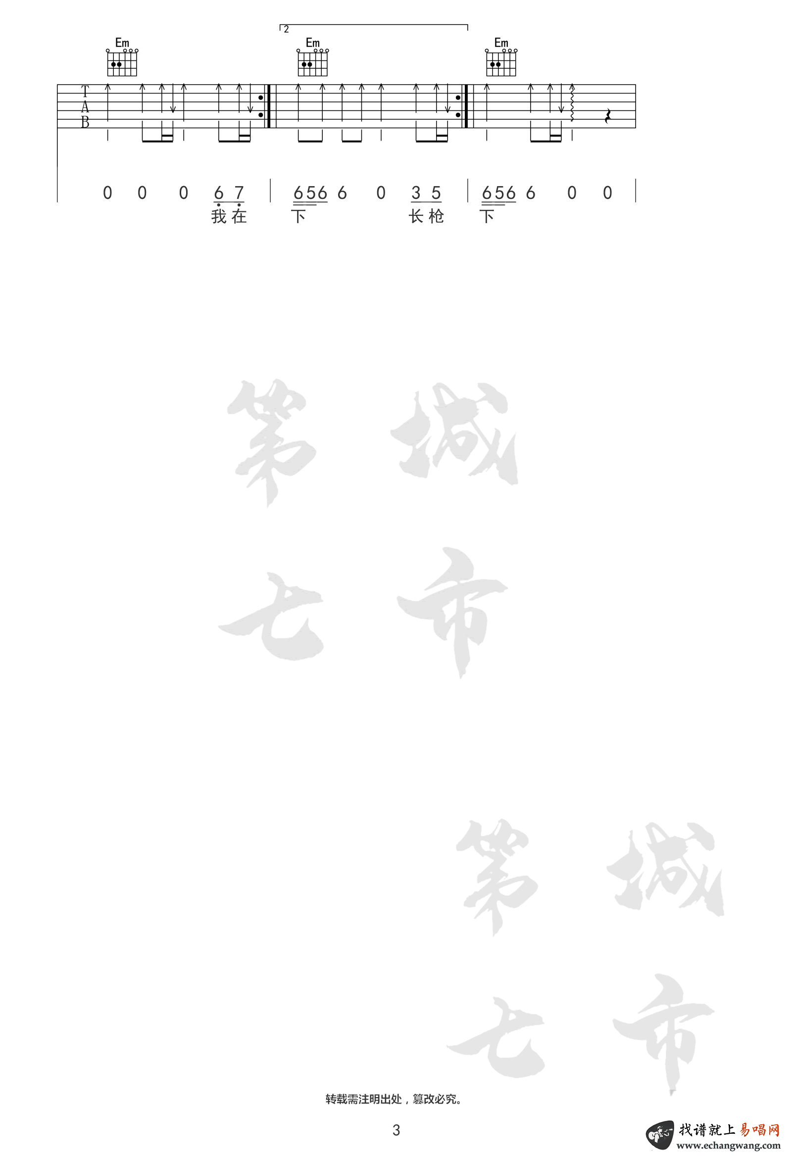 - 三号线吉他谱_刘大壮_C调弹唱谱_完整版六线谱