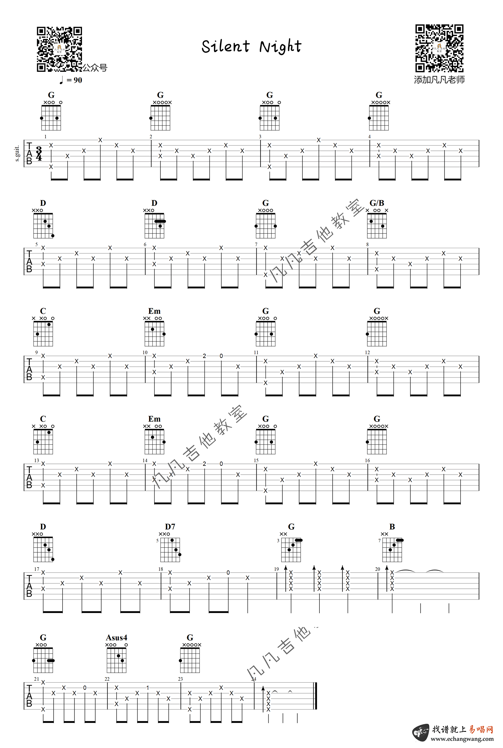 Silent Night指弹谱_平安夜吉他独奏谱_指弹演示视频