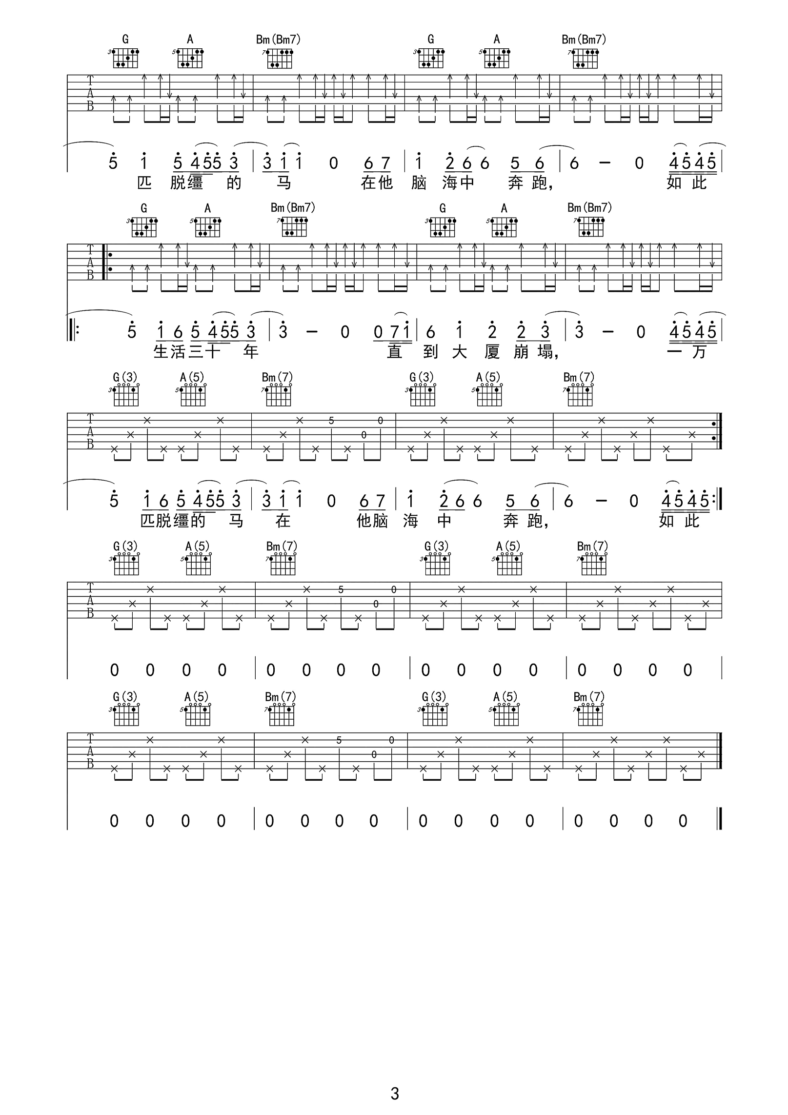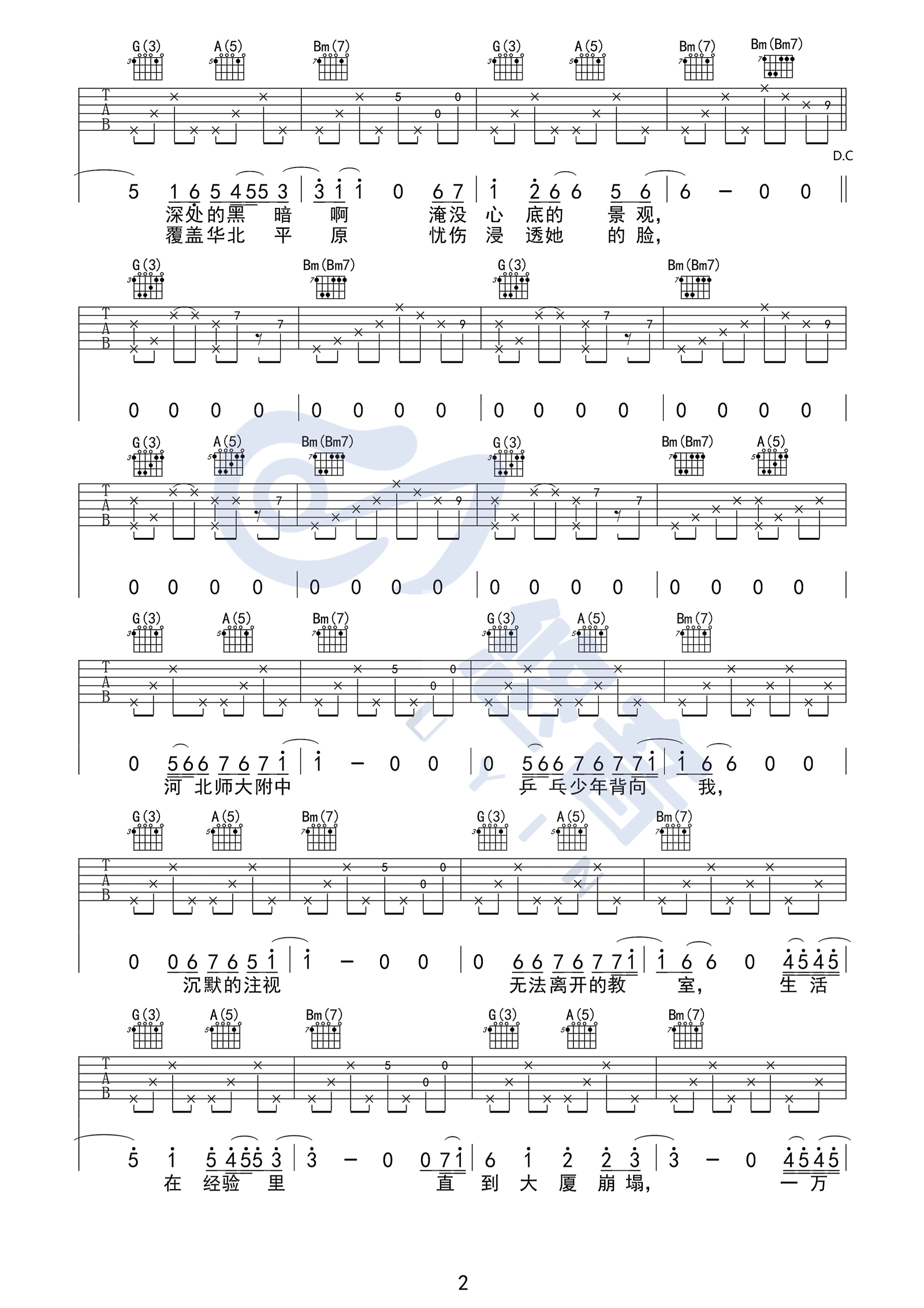 - 万能青年旅店《泥河》吉他谱_G调弹唱谱_原版六线谱