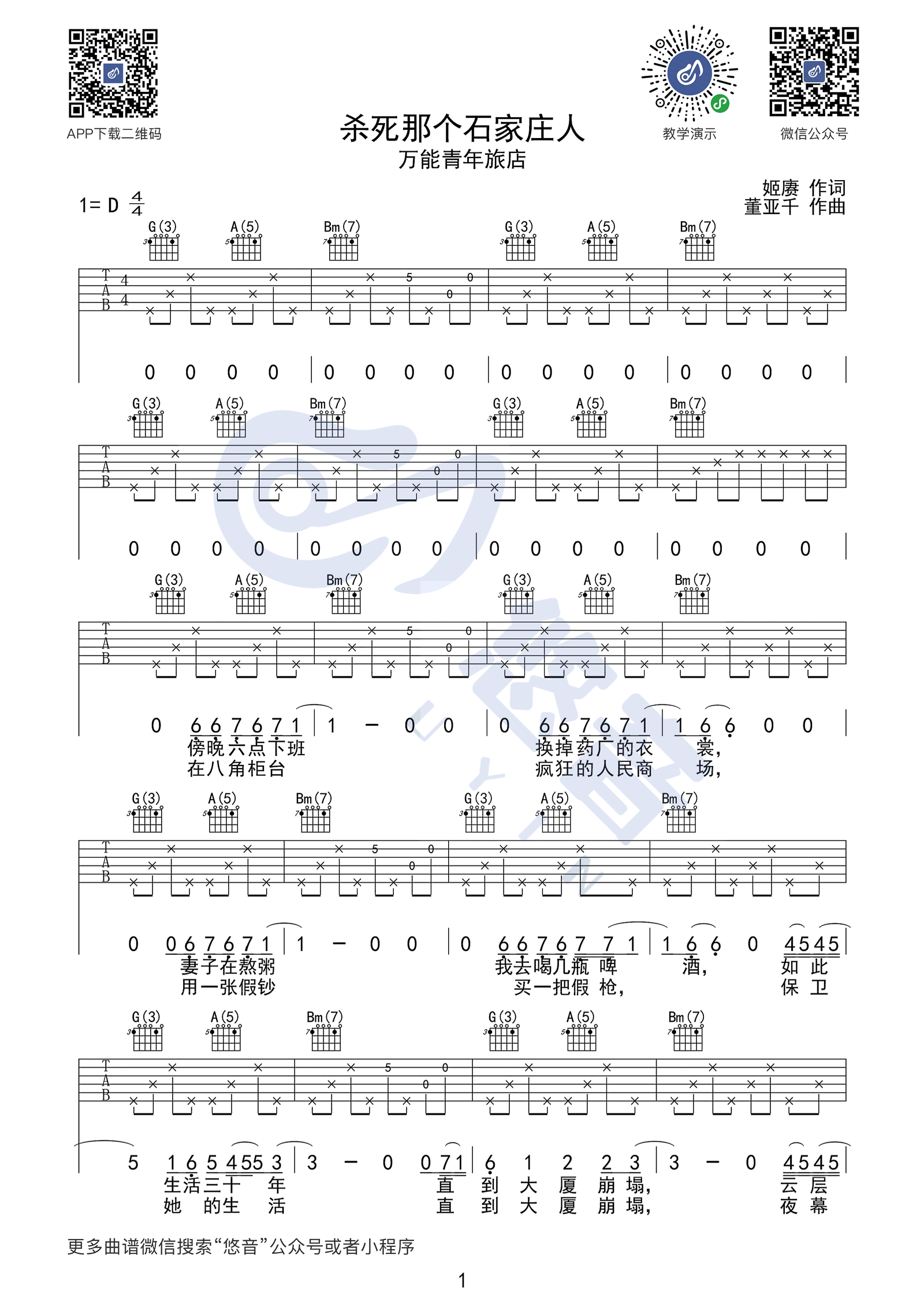 - 杀死那个石家庄人吉他谱_万能青年旅店_吉他弹唱教学视频